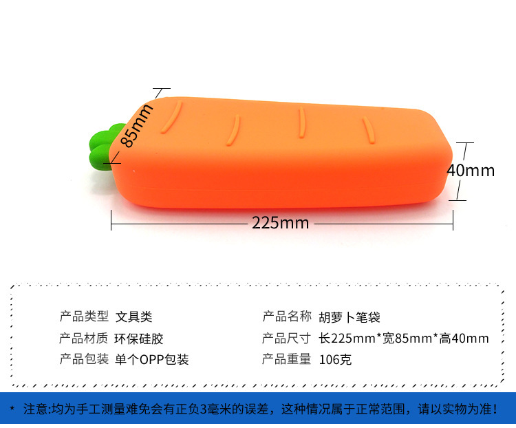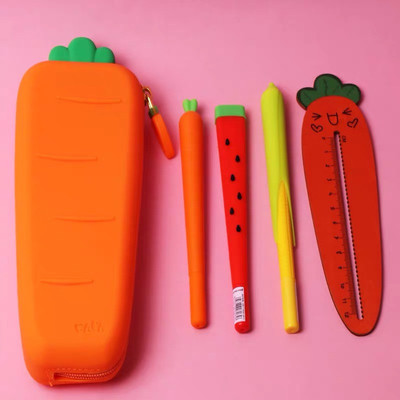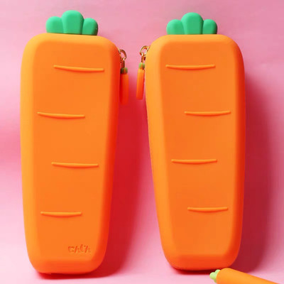 日用 文具 硅胶胡萝卜笔袋 创意造型大容量文具盒学生学习用品