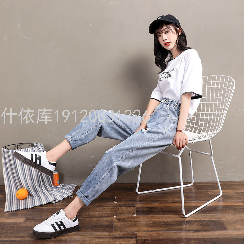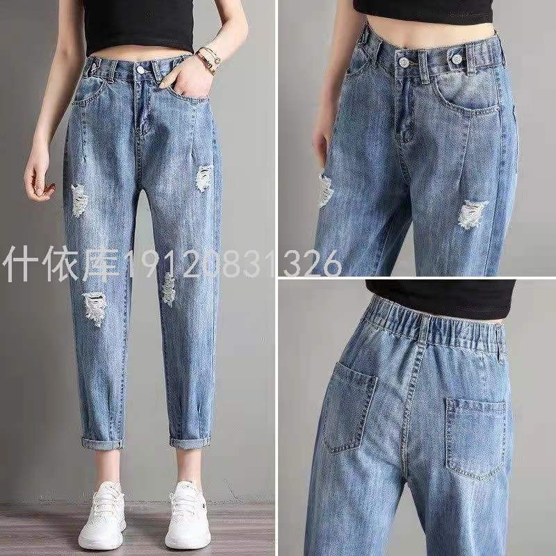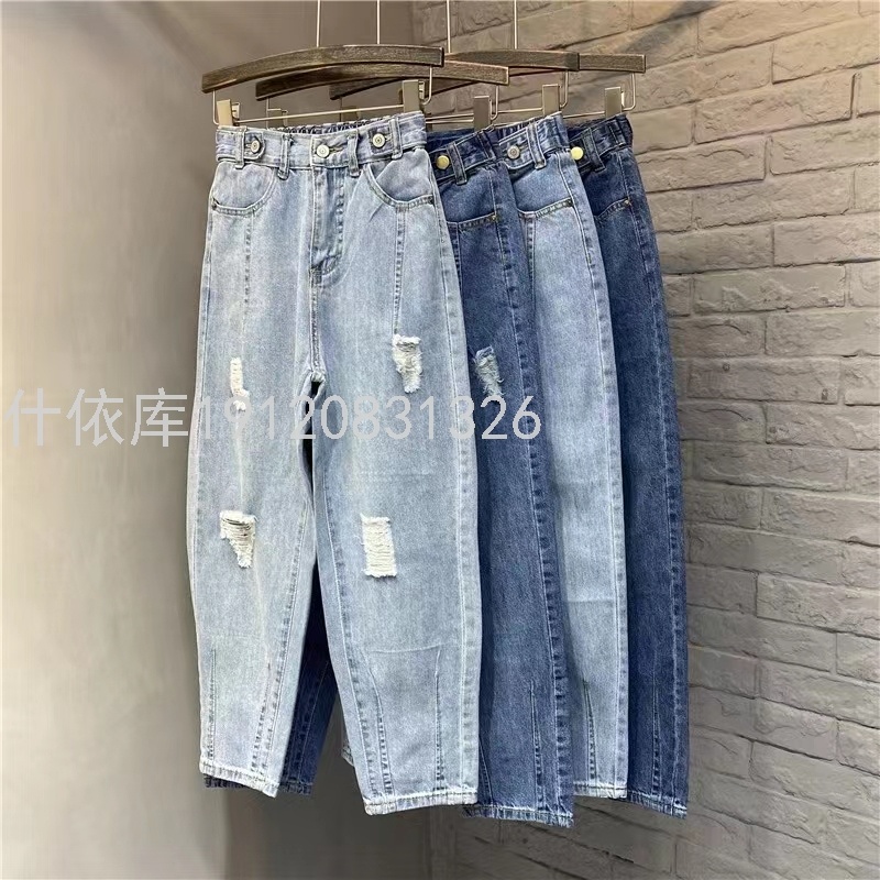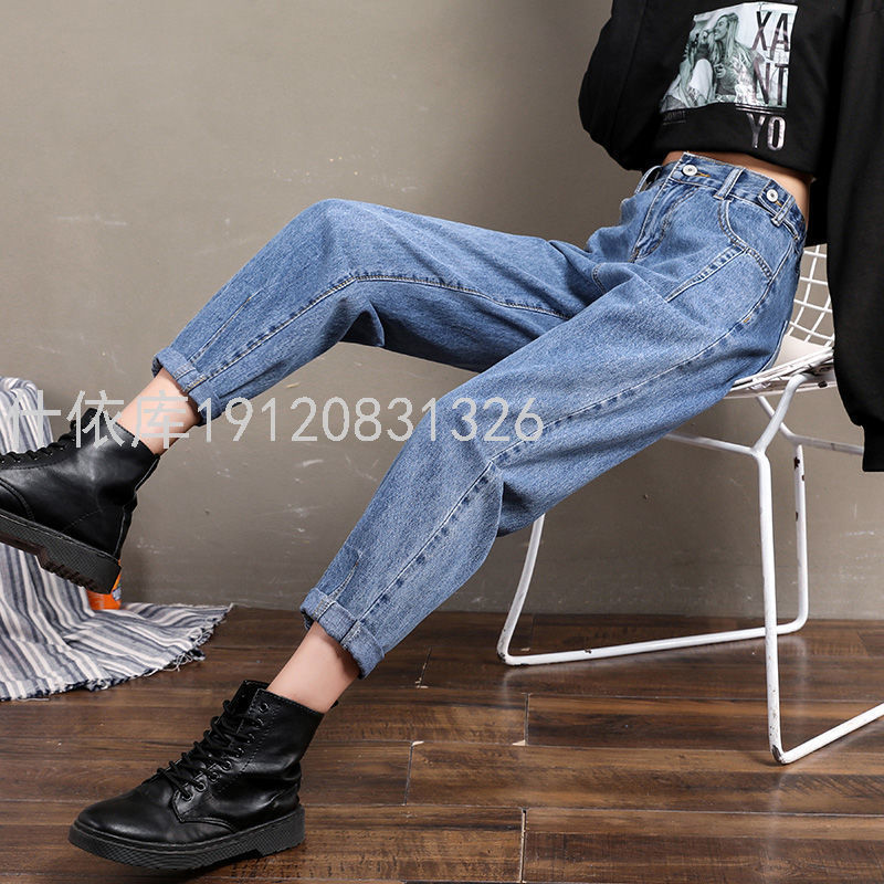 库存尾货新款老爹牛仔裤女宽松杂款显瘦松紧阔腿裤哈伦裤牛仔裤