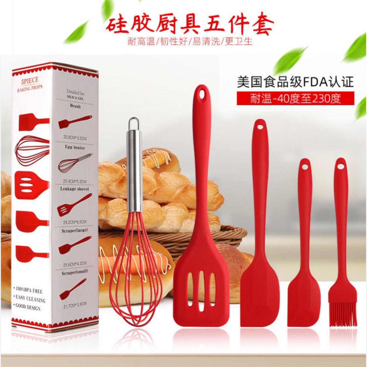 硅胶厨具五件套硅胶刮刀油刷打蛋器烘培工具厂家批发蛋糕工具套装