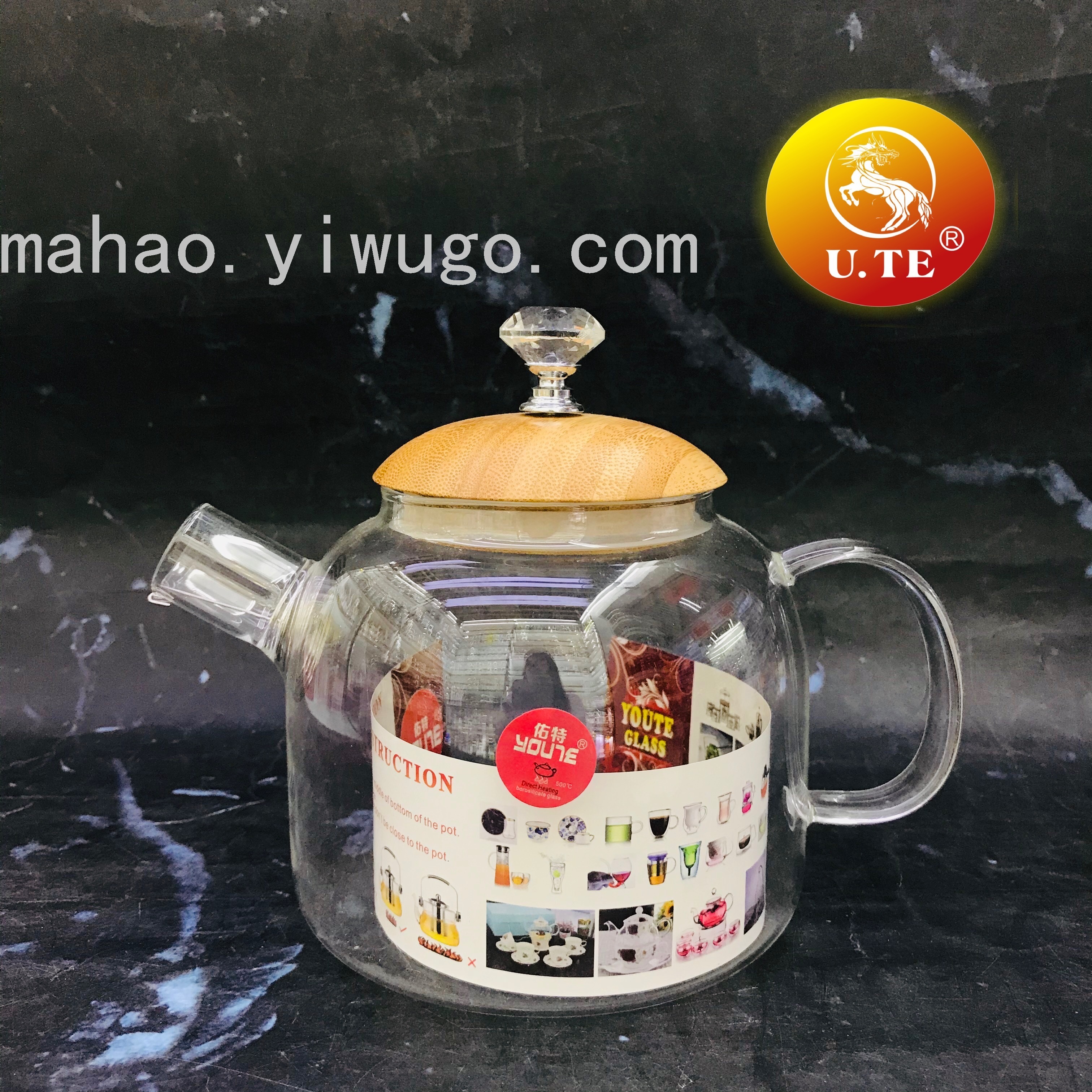 钻石木盖短嘴高硼硅玻璃茶壶咖啡壶