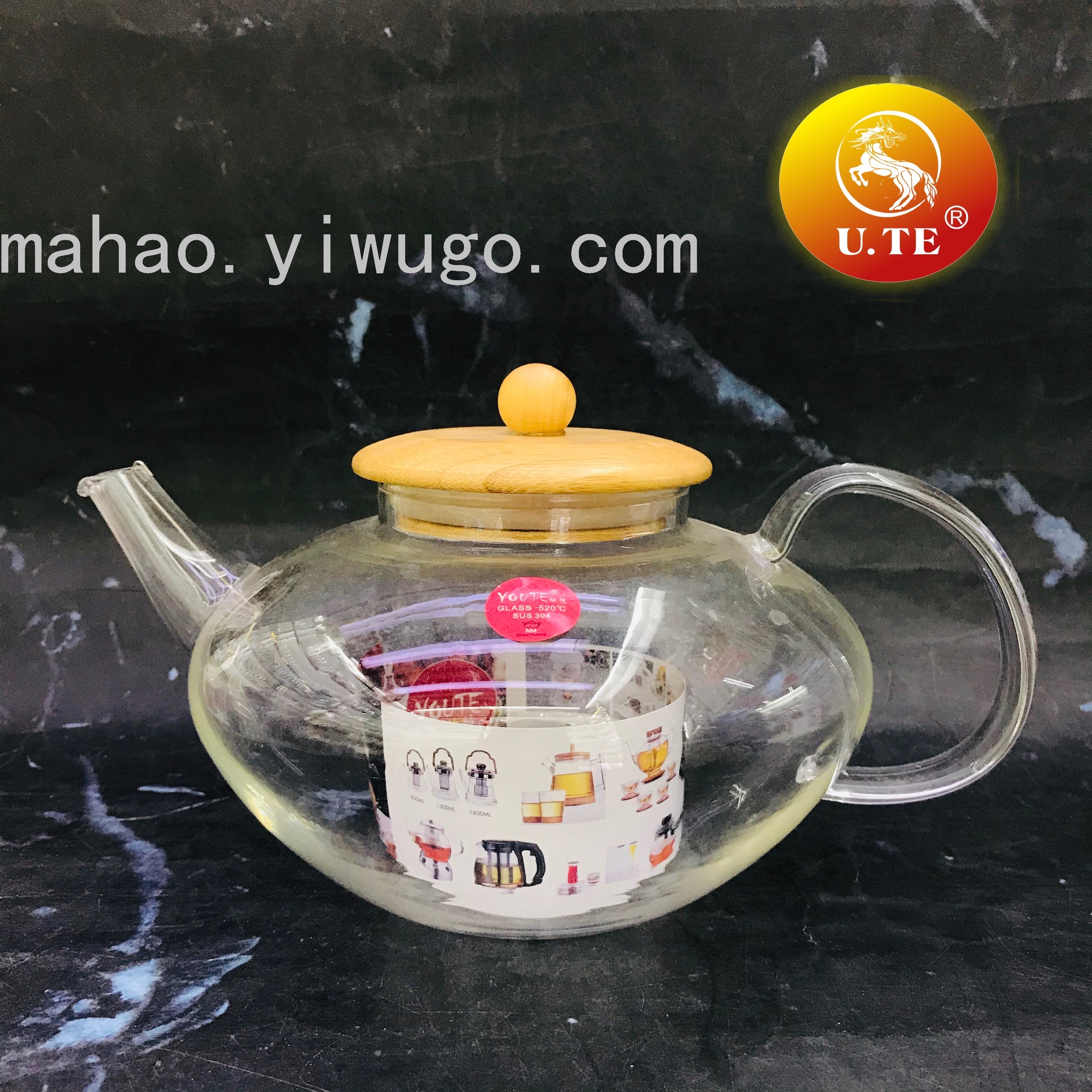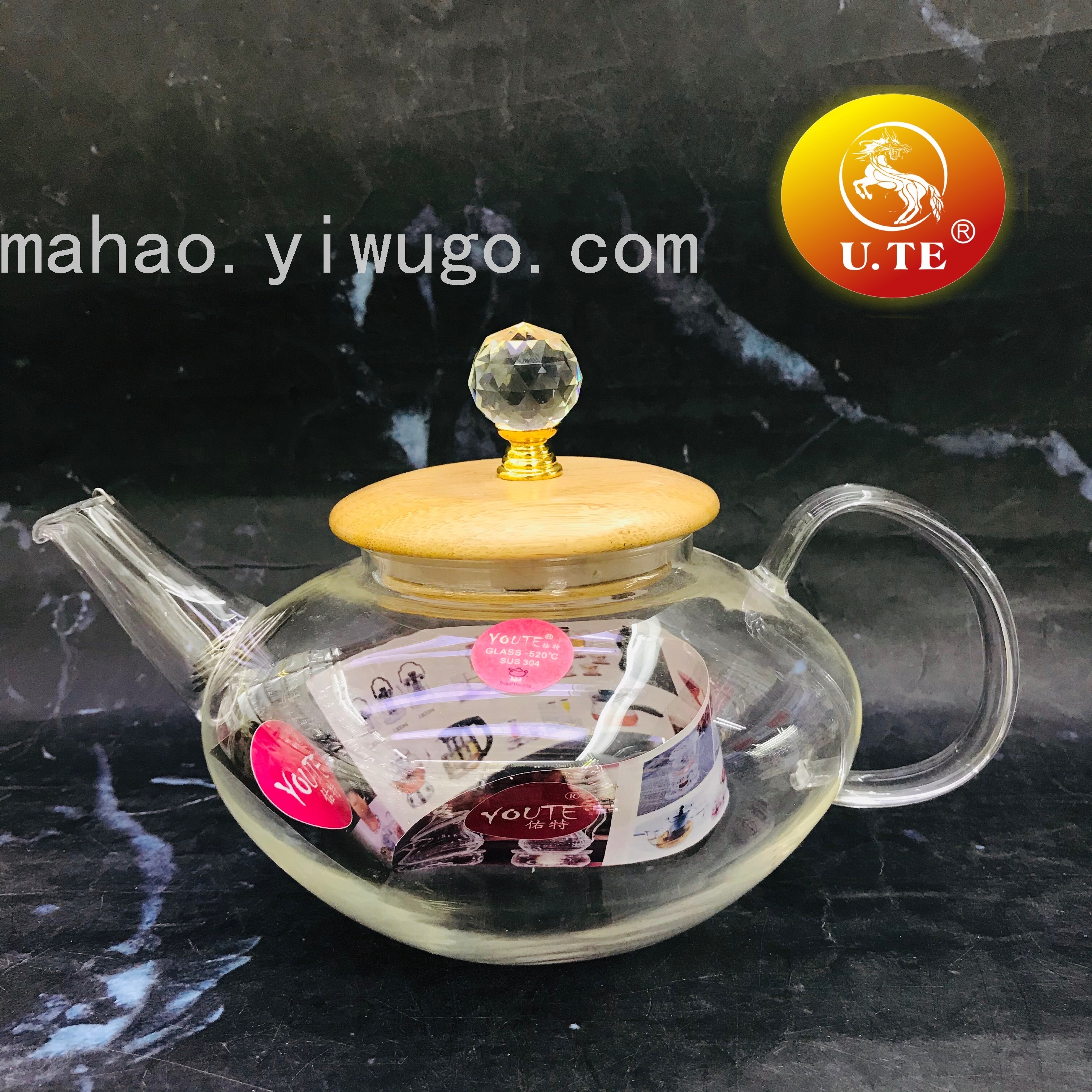 晶致木头盖直火壶家用耐热高硼硅玻璃茶壶过滤壶泡茶壶礼品咖啡壶
