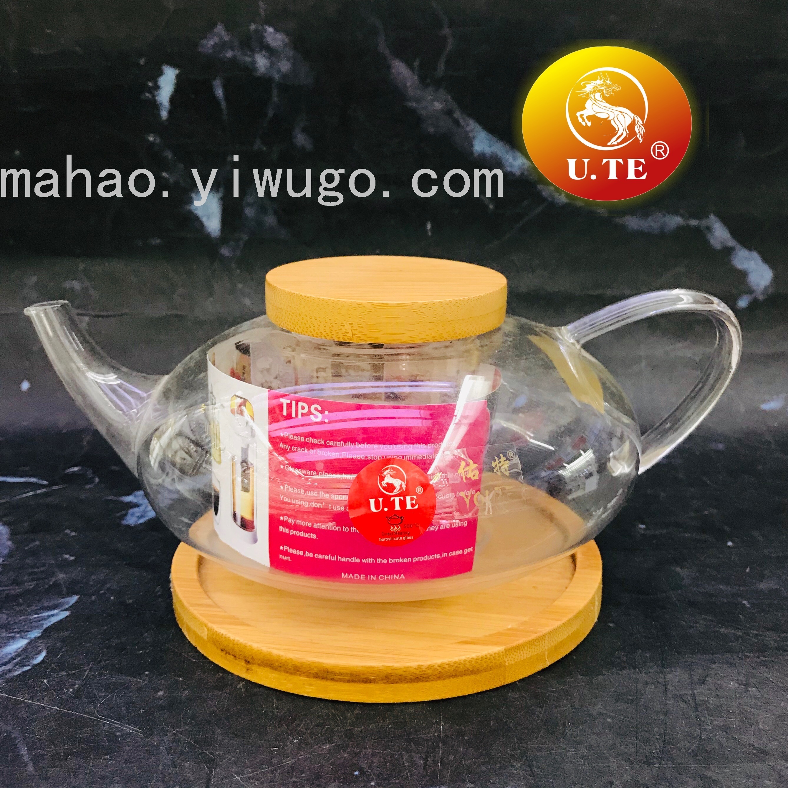 竹盖高硼硅玻璃茶壶咖啡壶