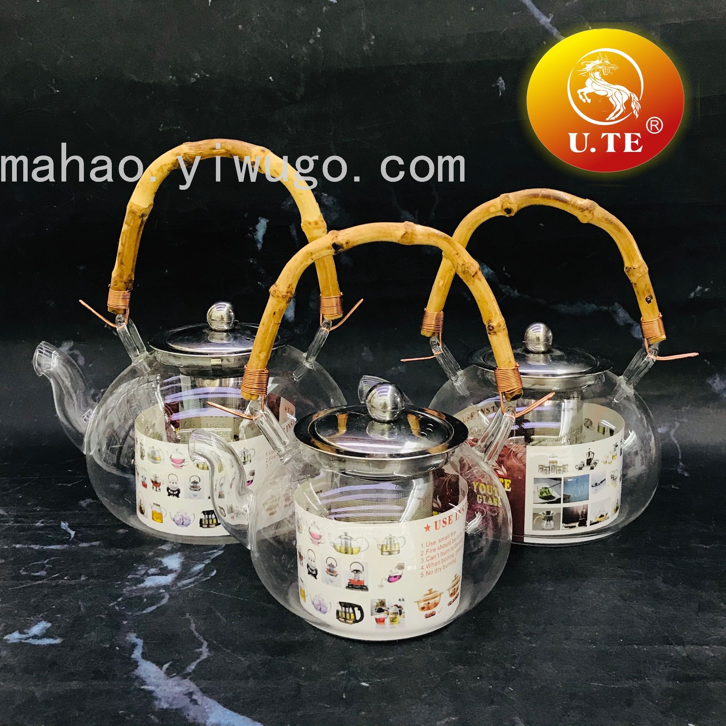 晶致不锈钢盖滤网竹柄玻璃提梁壶泡茶壶