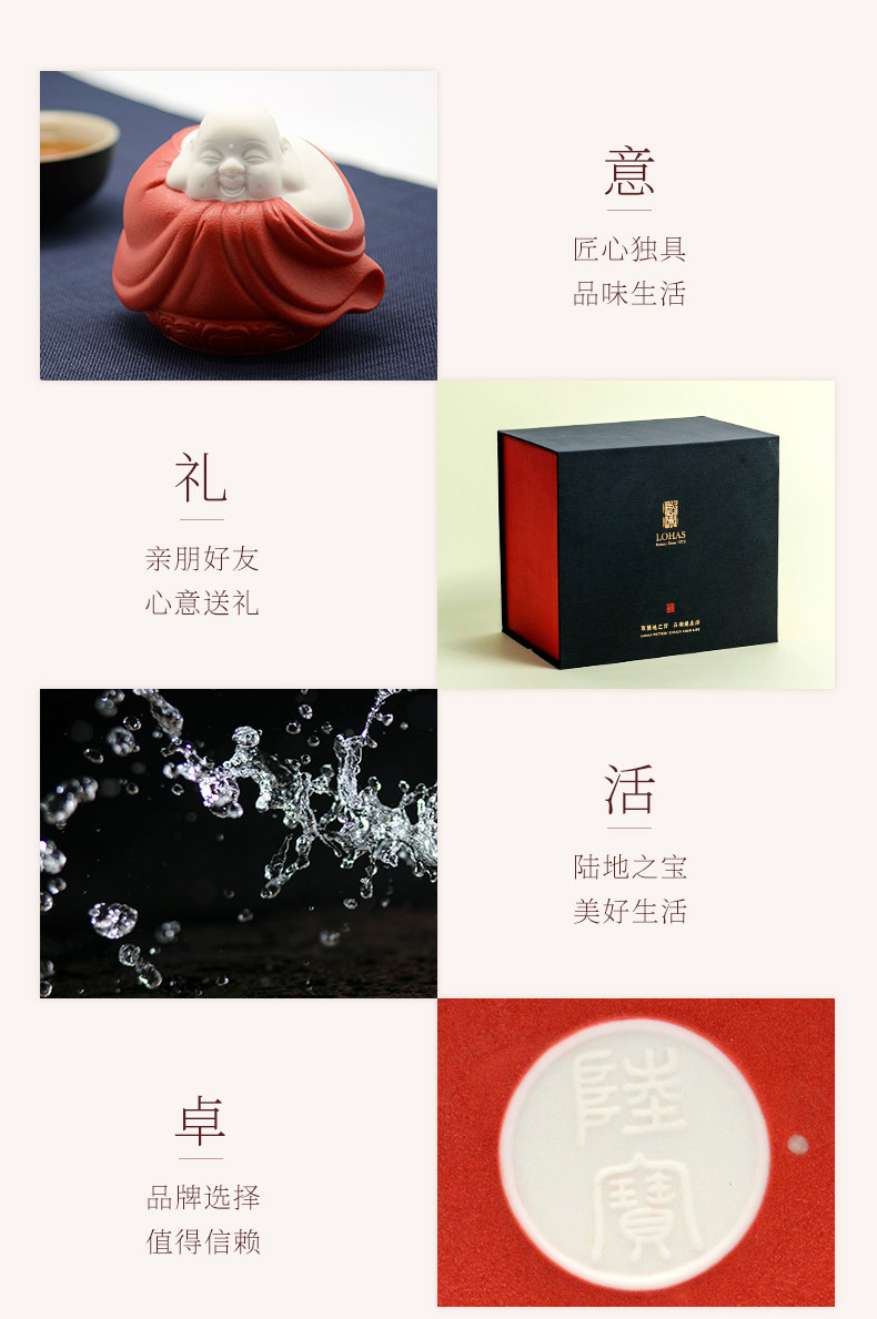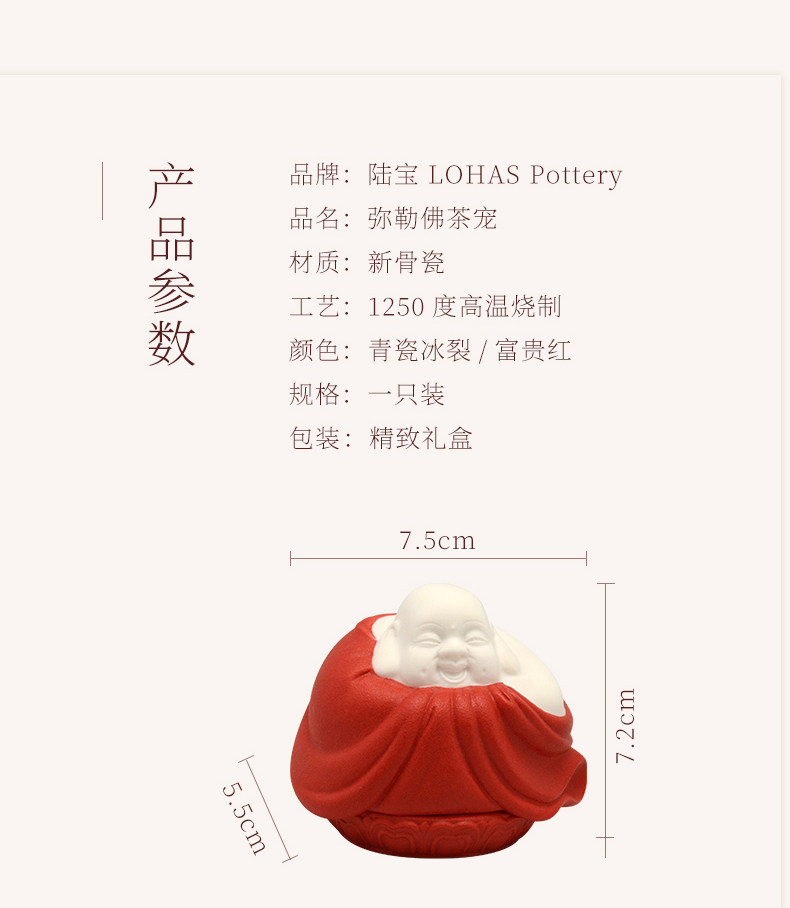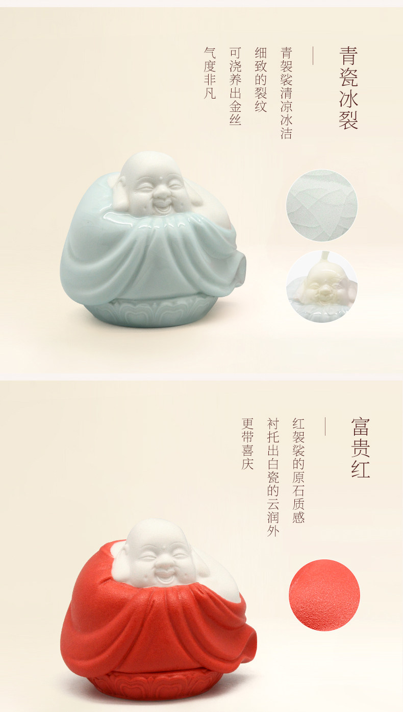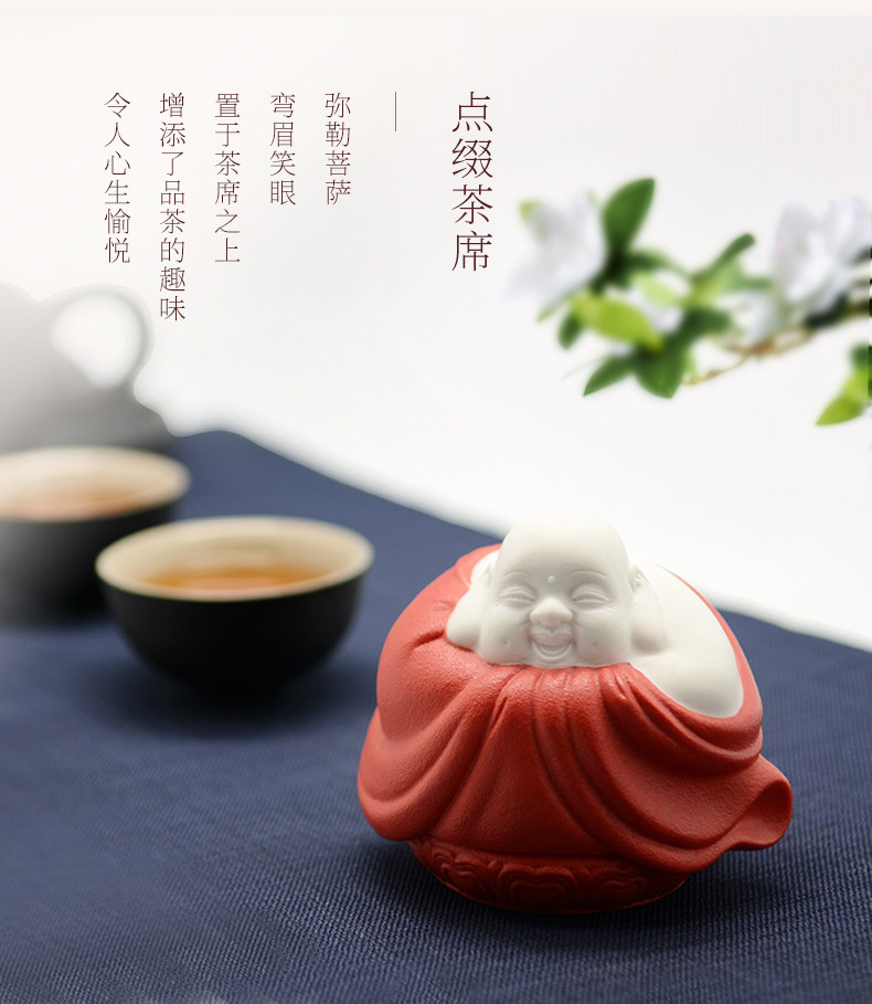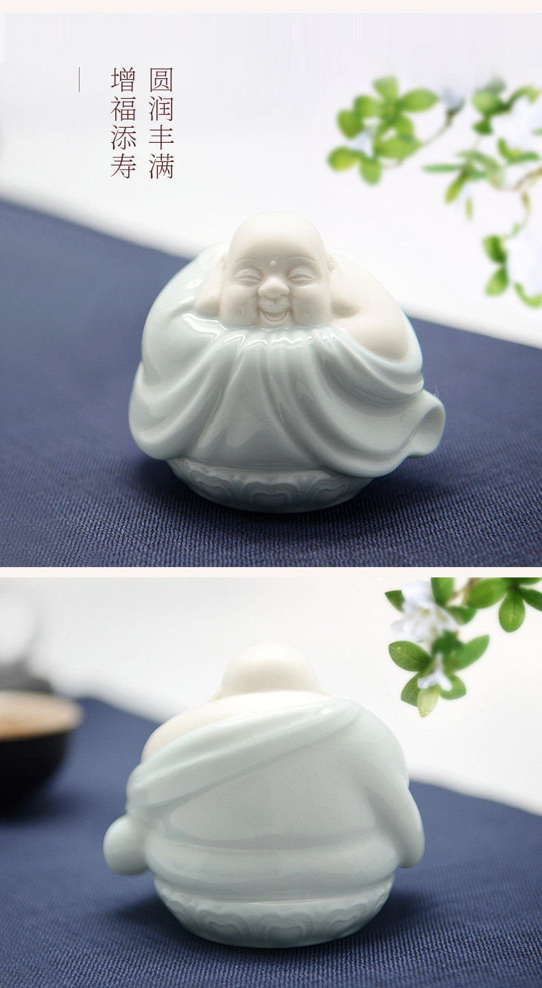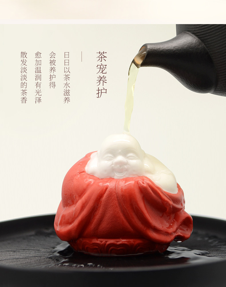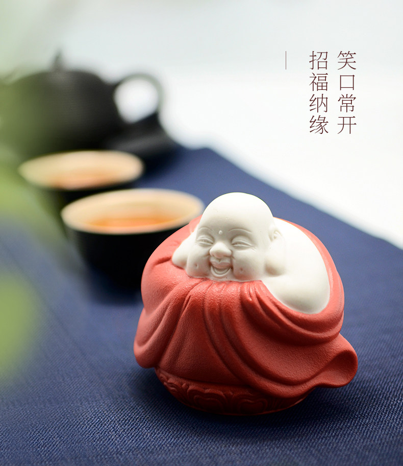 陆宝茶具陶瓷茶宠摆件茶玩茶席用品粗陶弥勒佛茶道茶桌摆件可养
