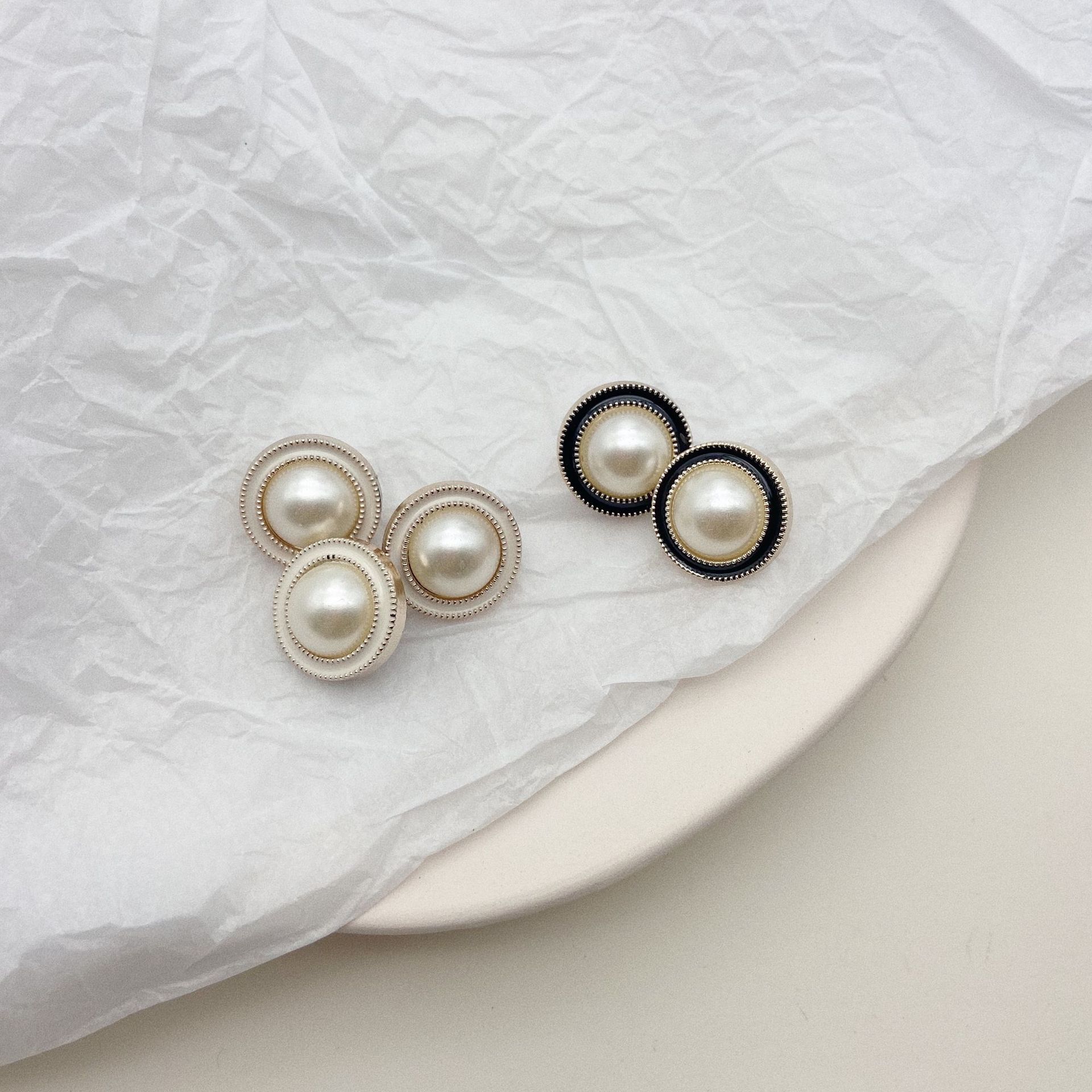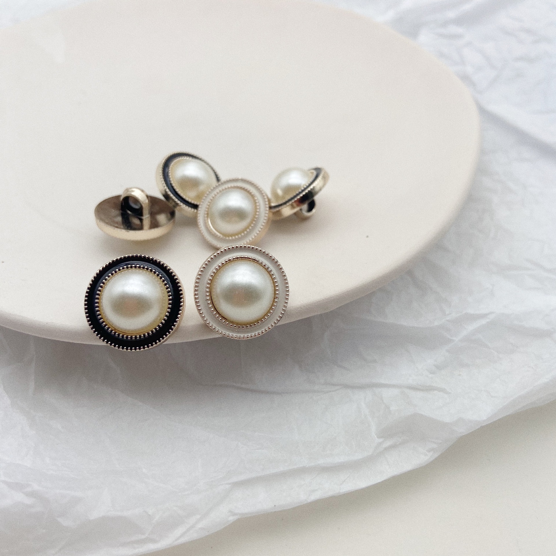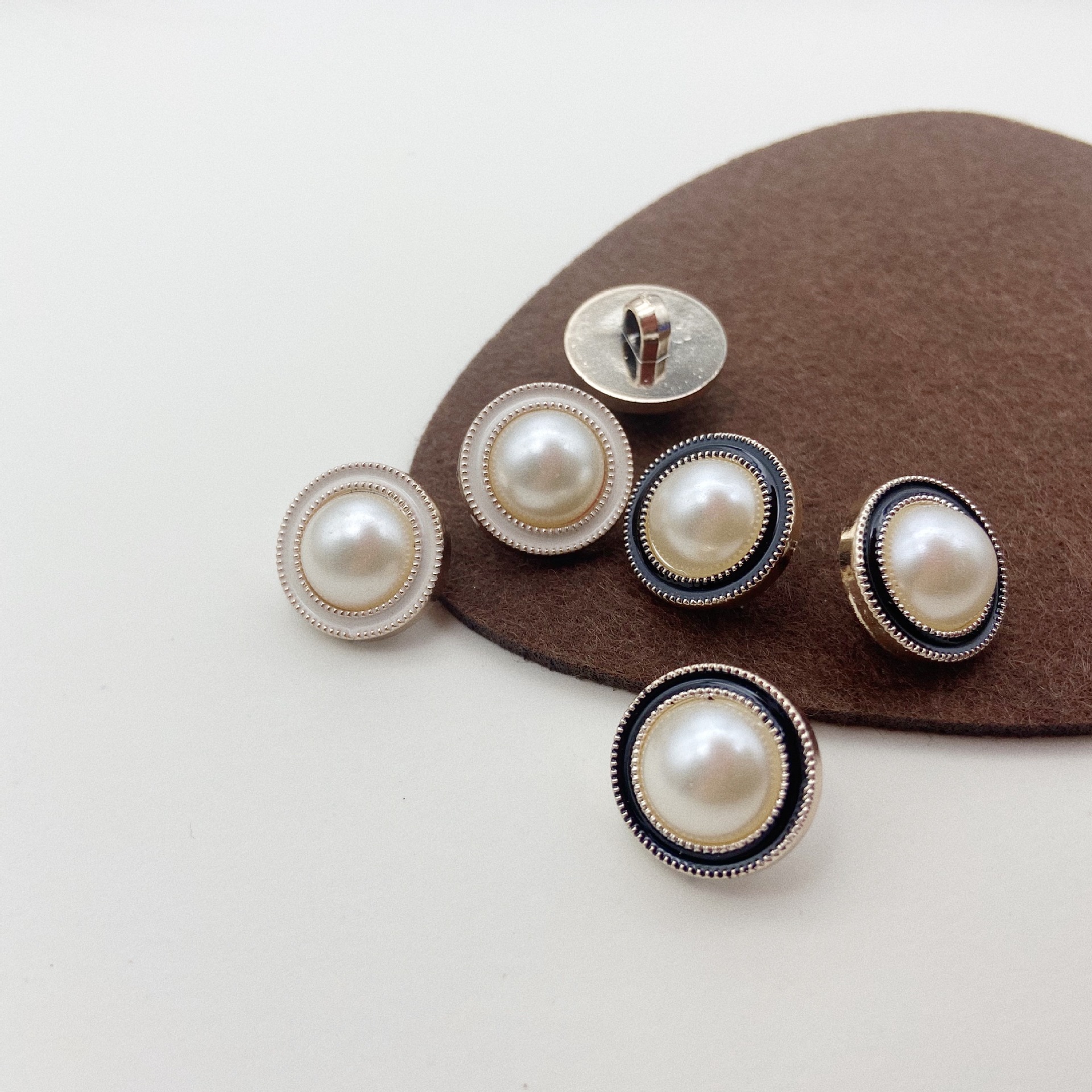 女生大衣开衫献纽扣 仿珍珠半圆镶嵌纽扣 点油塑料珍珠高脚扣子