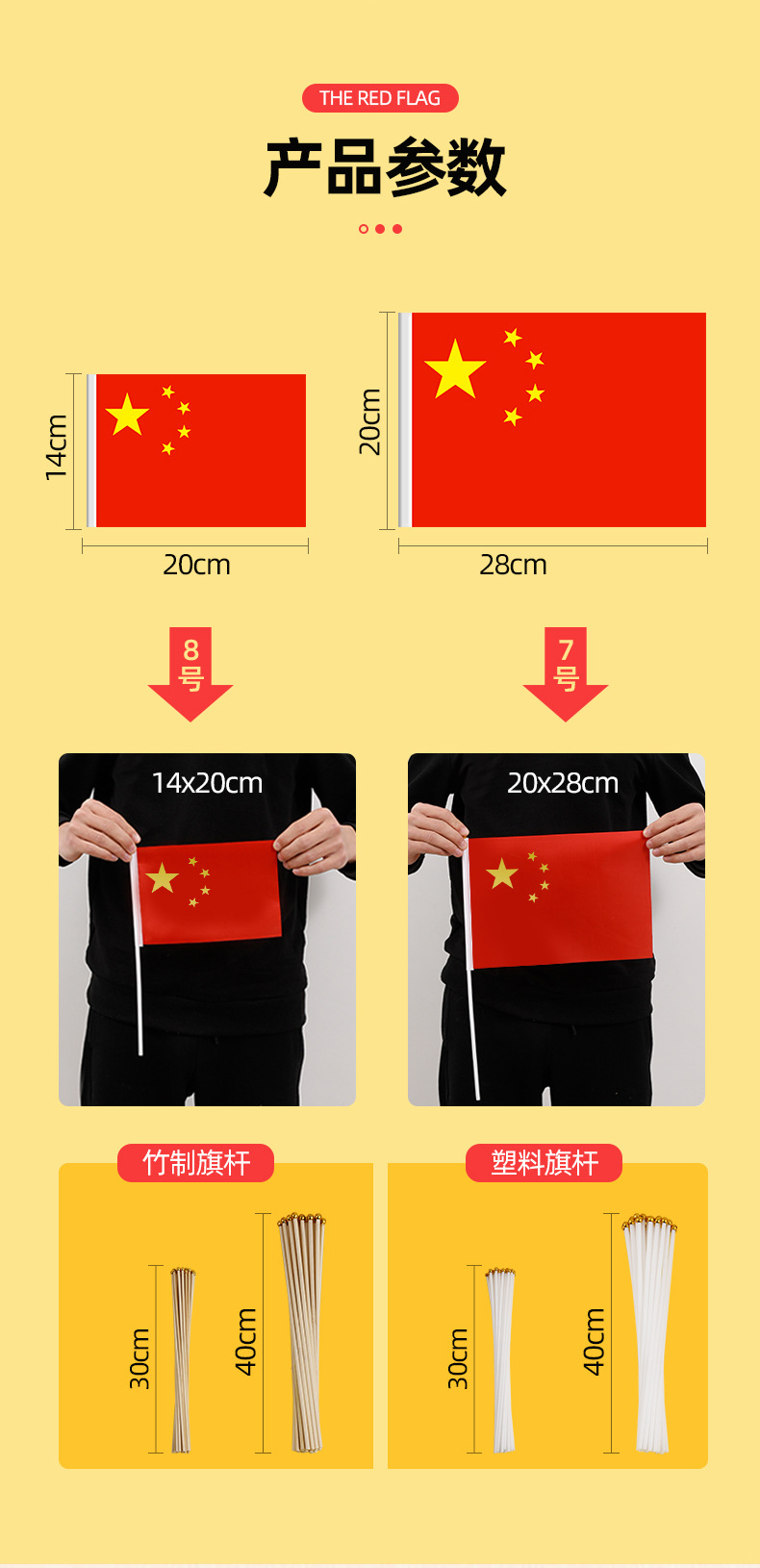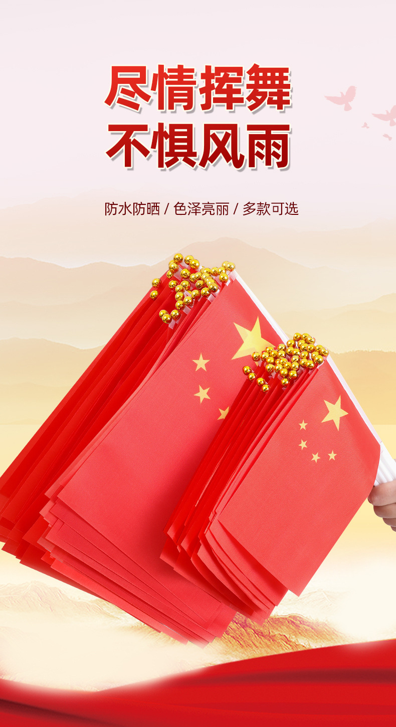 中国国旗五星旗帜手摇旗小旗带杆小国旗小旗8号国旗串批发国庆