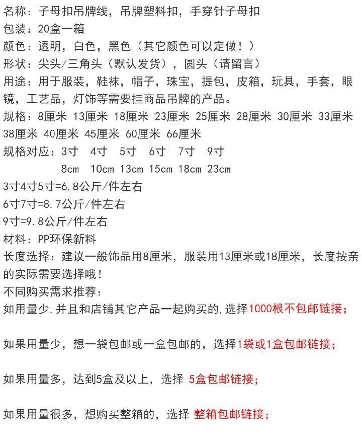 手穿针子母扣吊牌扣全新PP料透明黑白色三角圆头3/5/7寸厂家直销