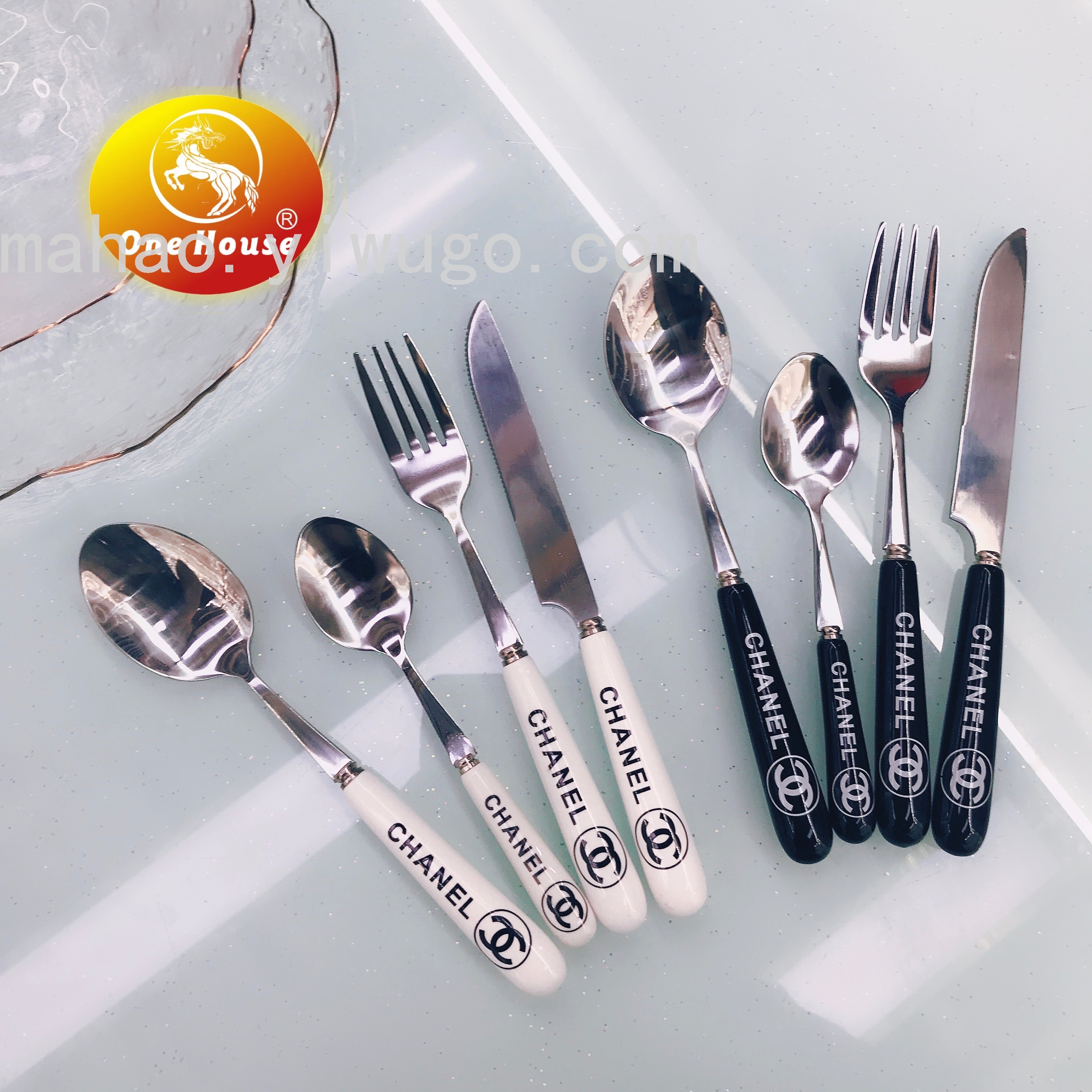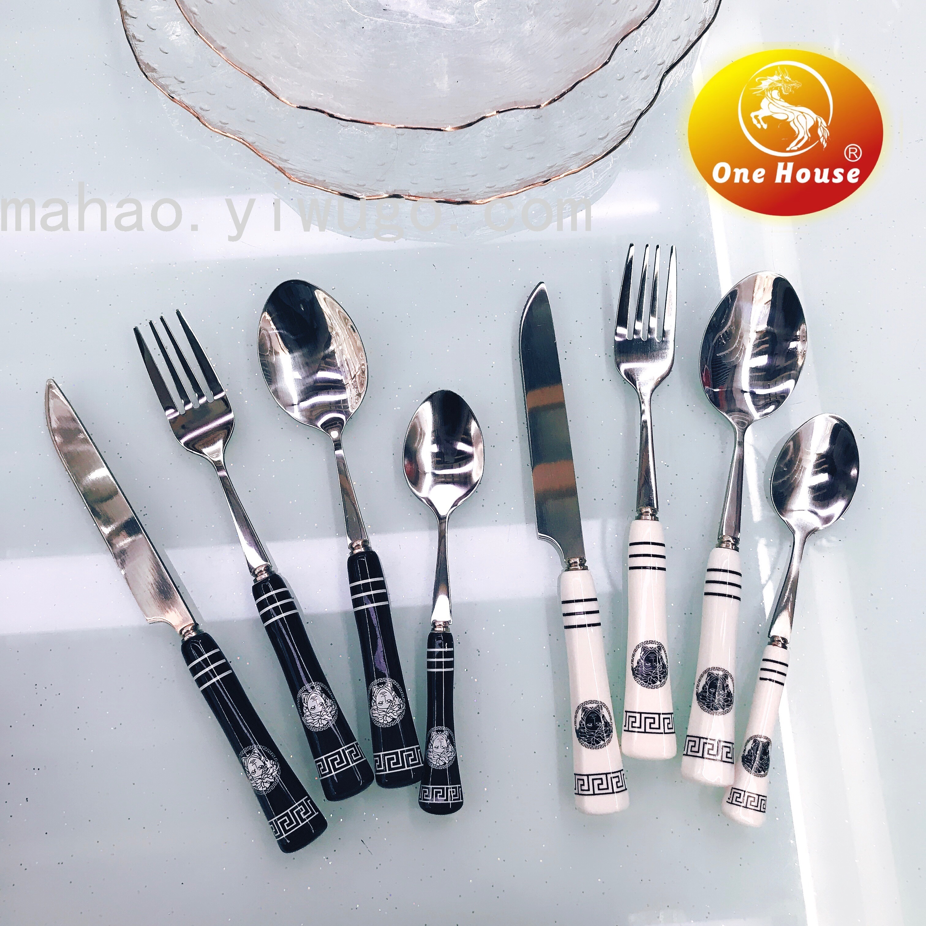 晶致厂家直销陶瓷柄不锈钢餐具创意色釉刀叉勺套装酒店西餐餐具
