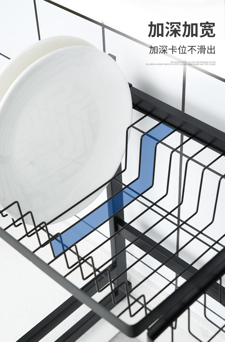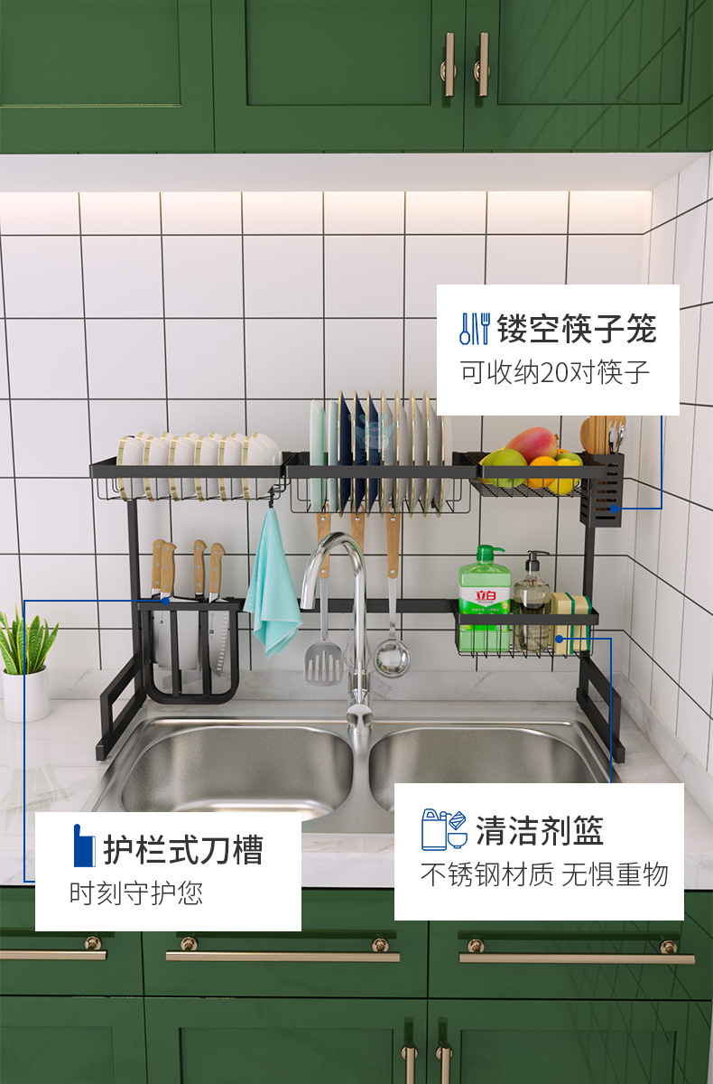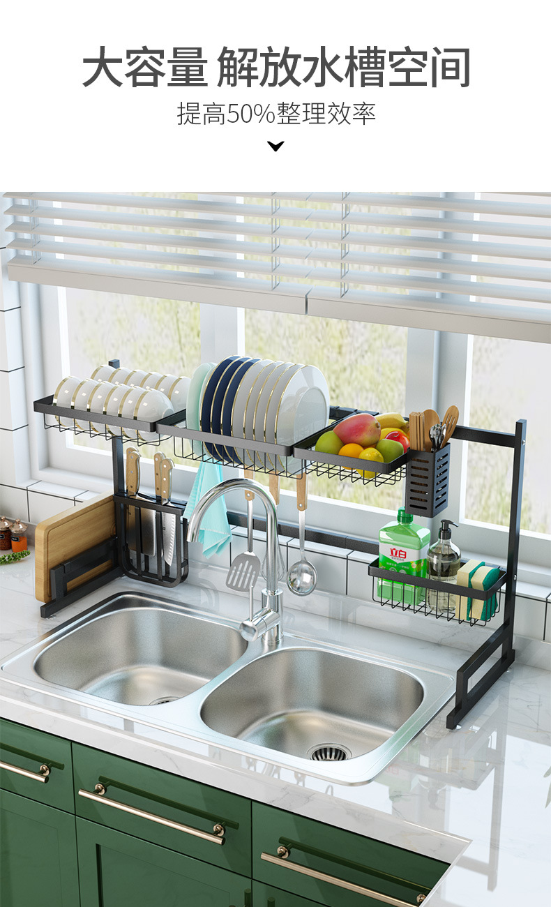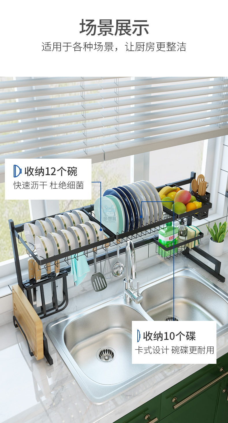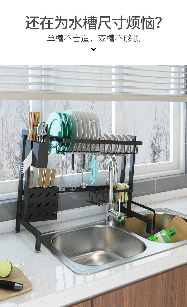 水槽上方置物架厨房伸缩黑色洗水池家用晾碗碟筷子刀具沥水收纳架