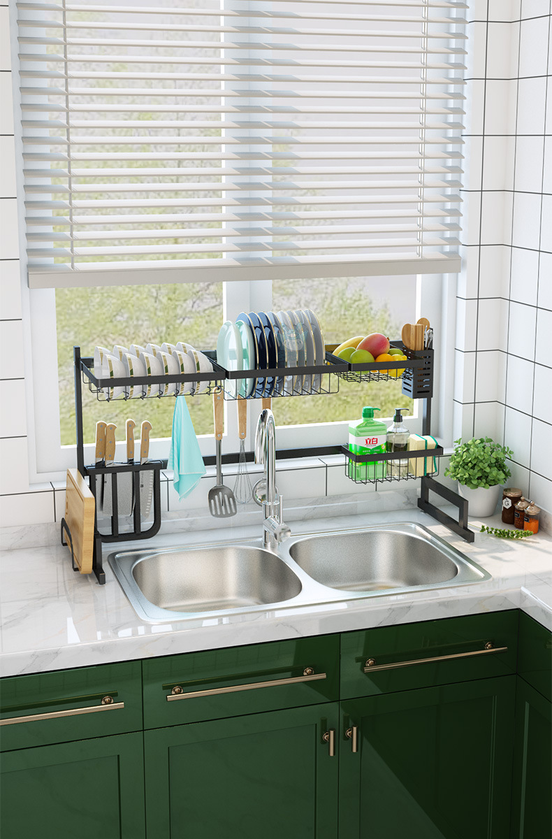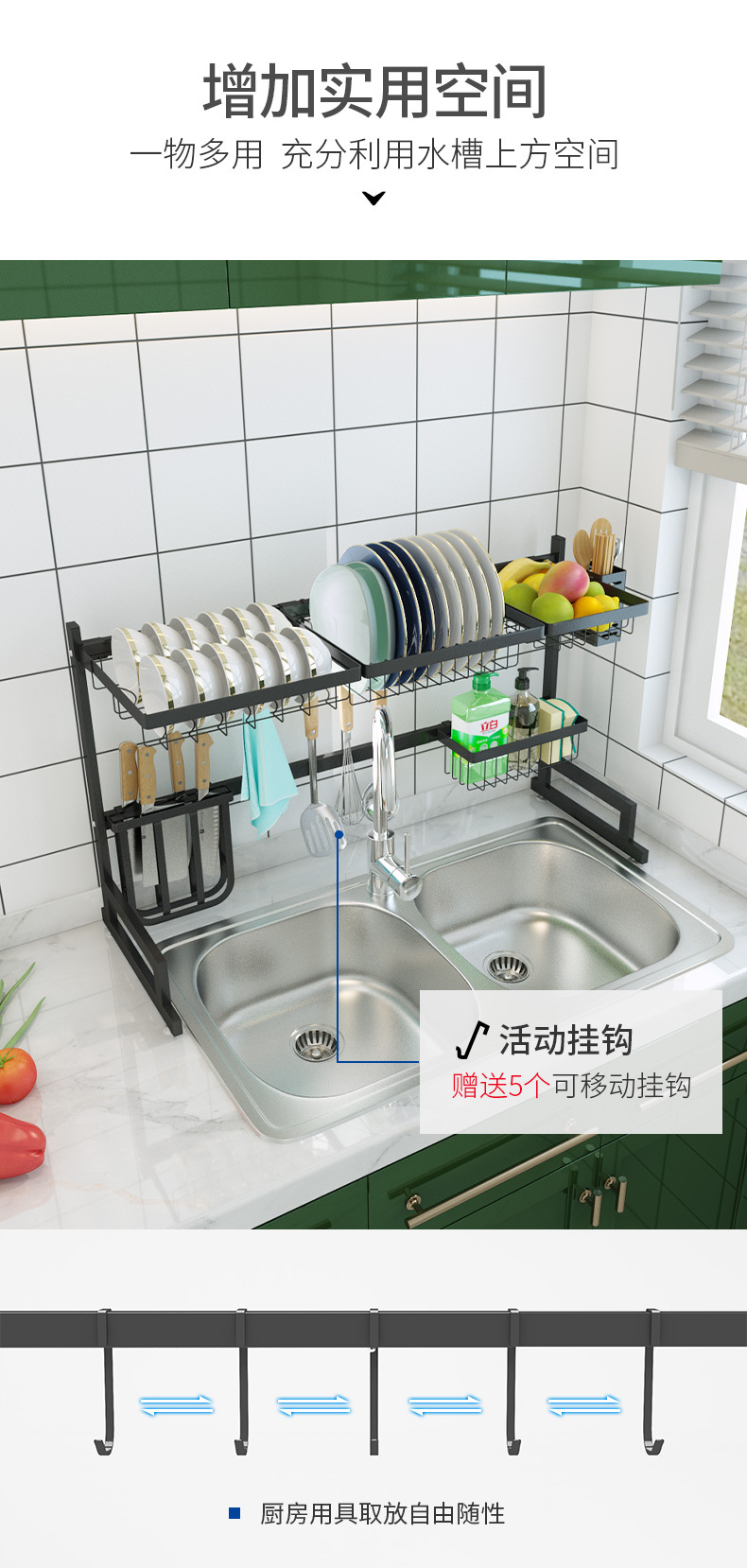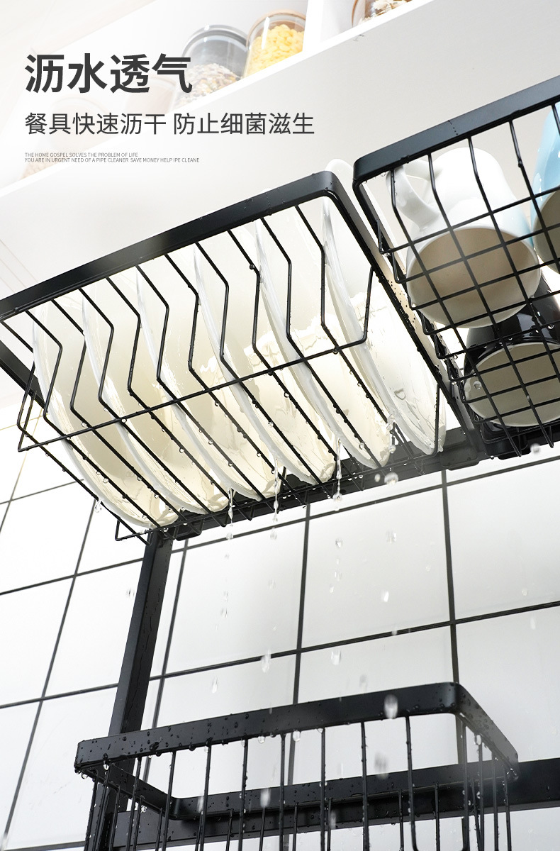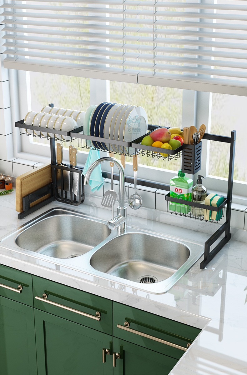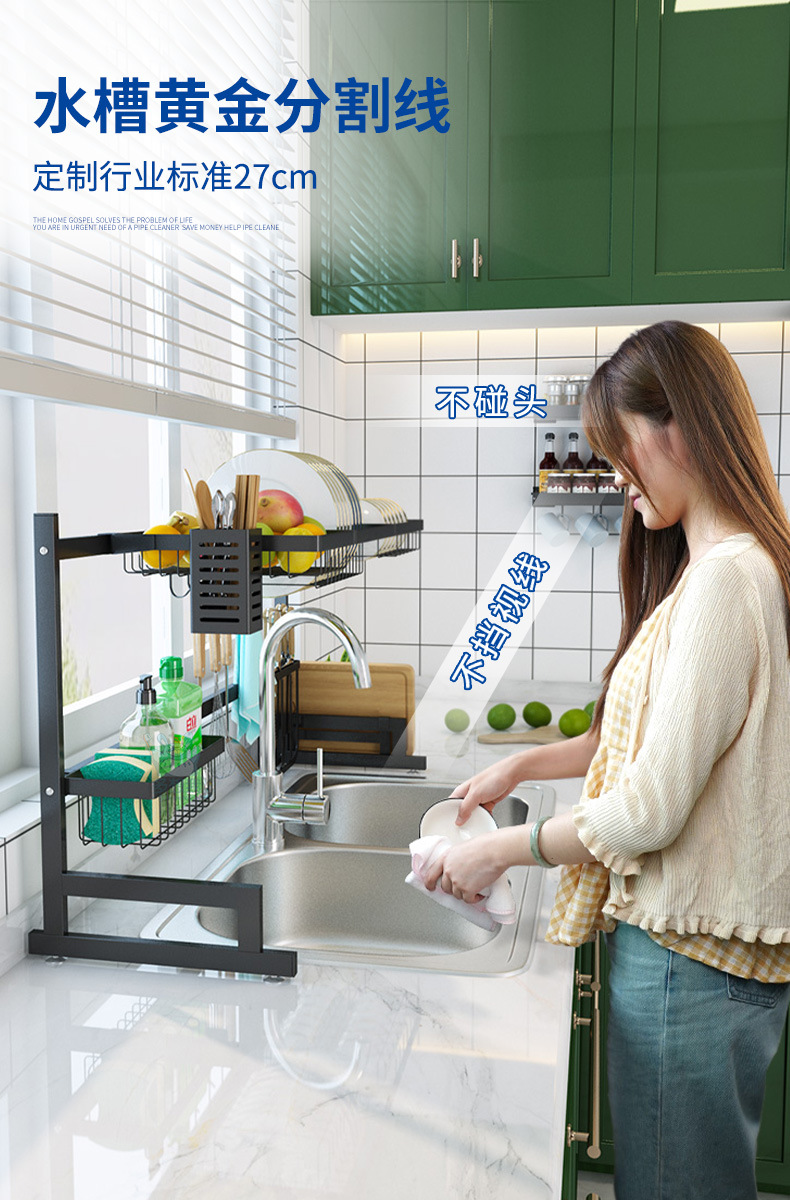 水槽上方置物架厨房伸缩黑色洗水池家用晾碗碟筷子刀具沥水收纳架