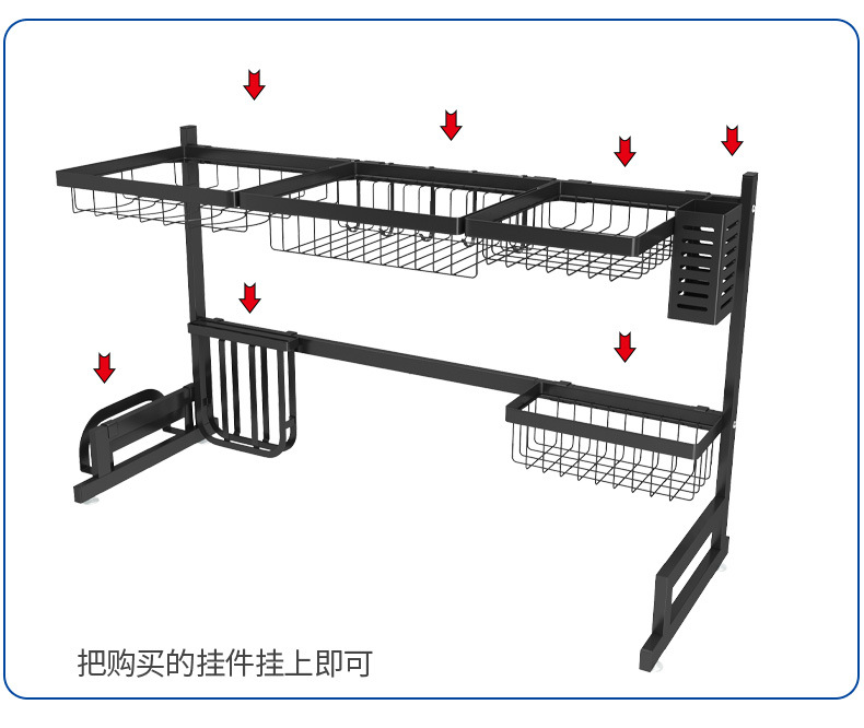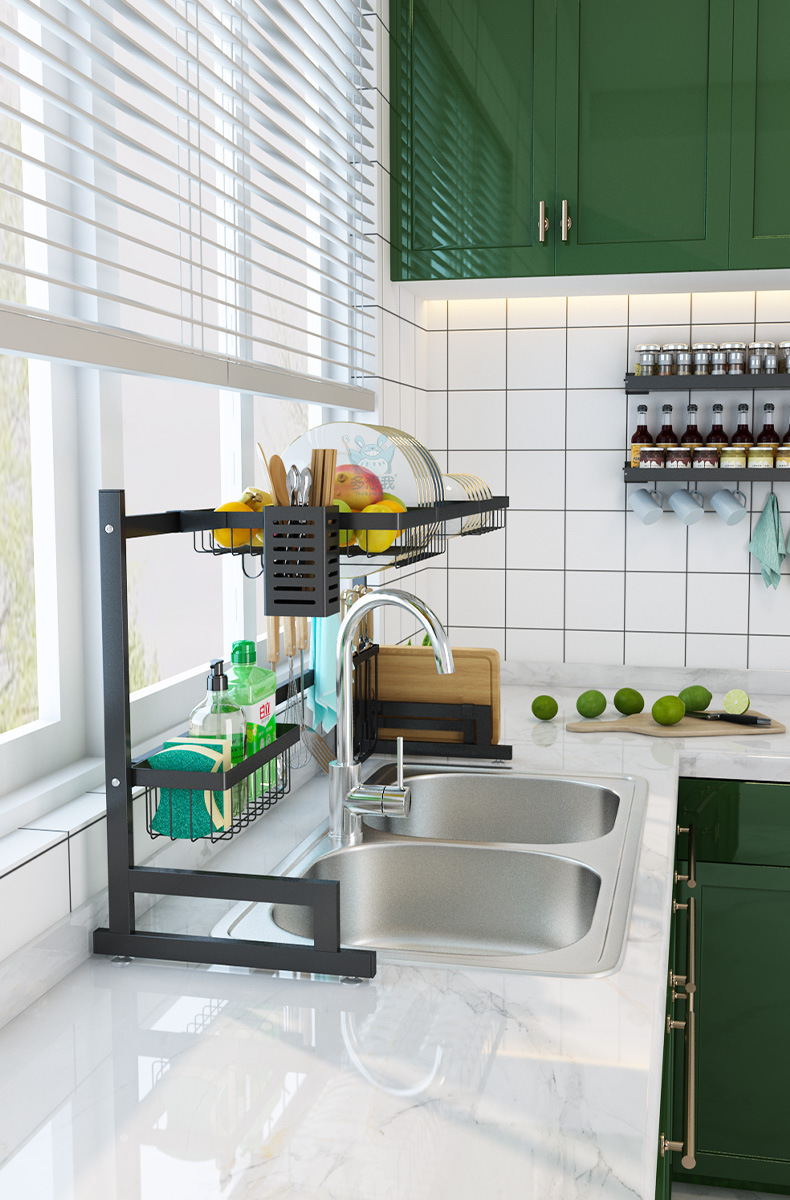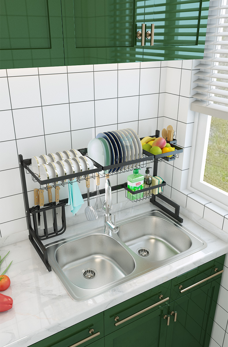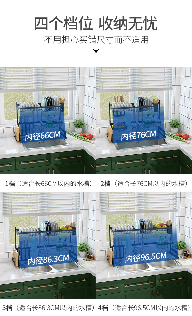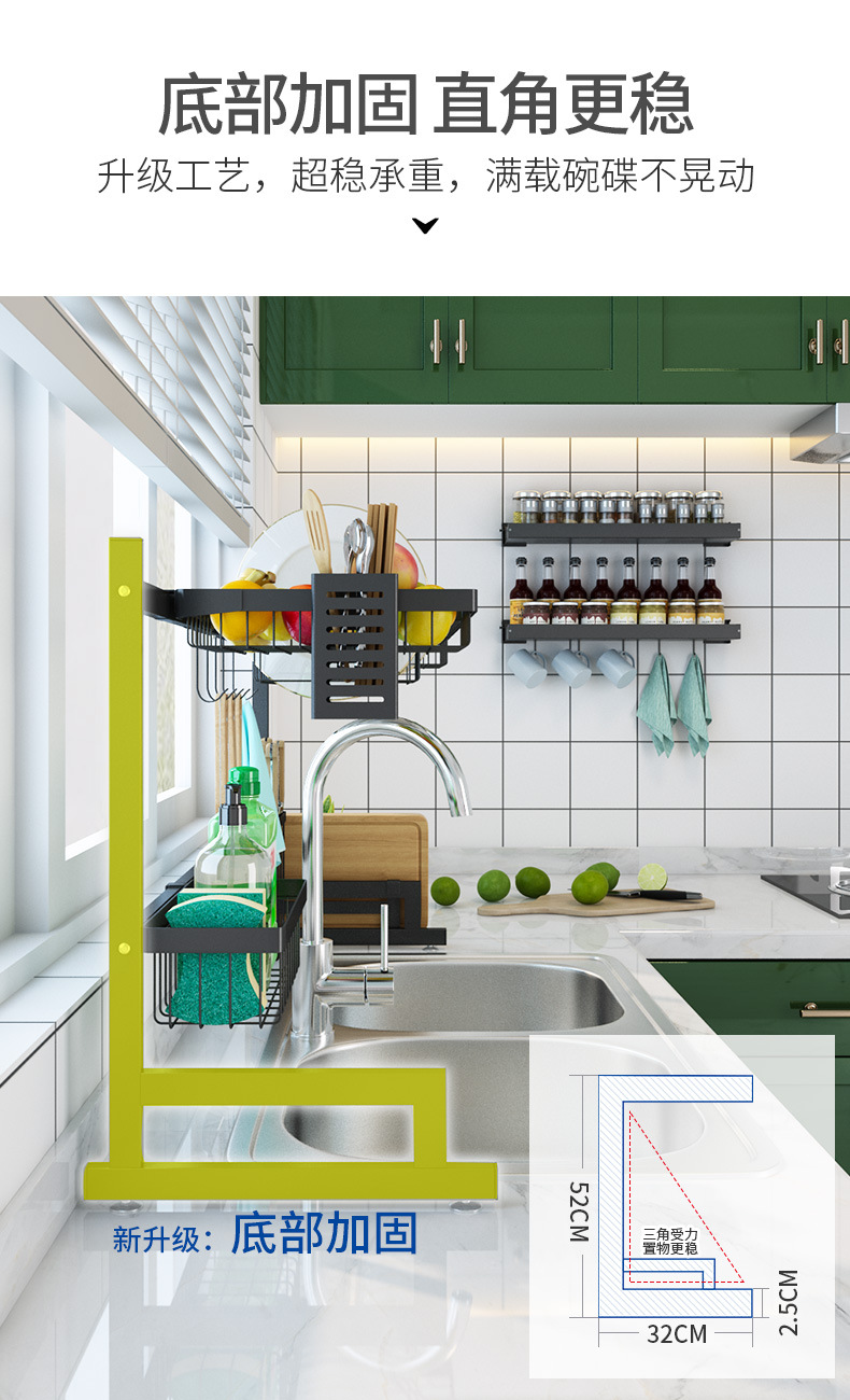 水槽上方置物架厨房伸缩黑色洗水池家用晾碗碟筷子刀具沥水收纳架