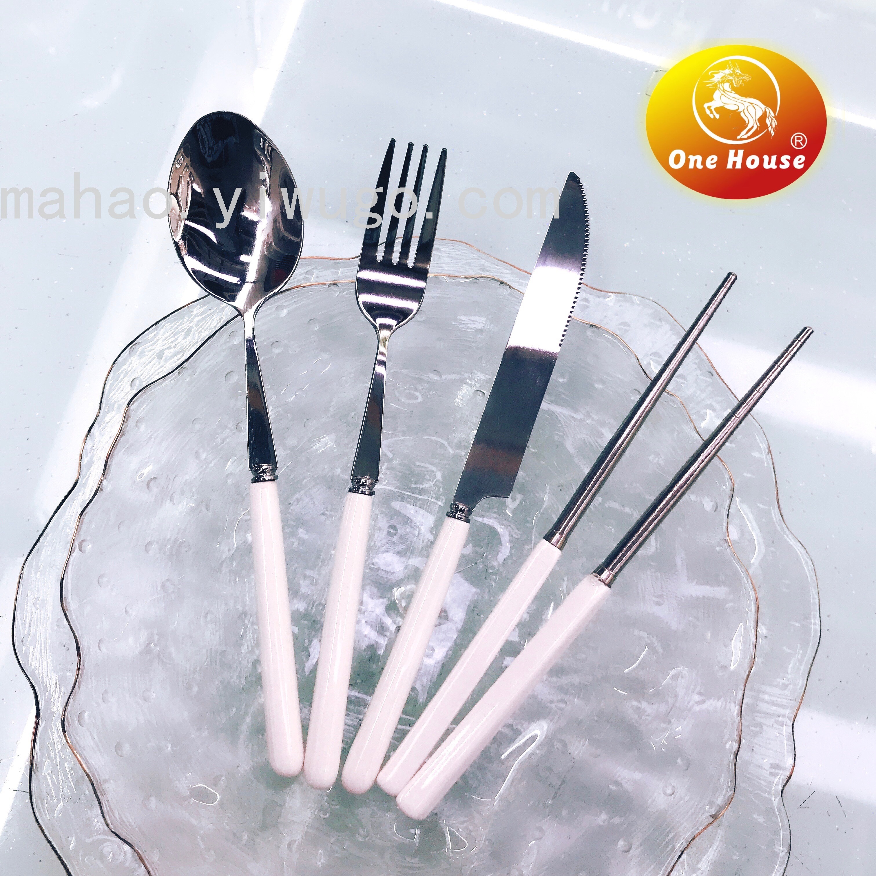 晶致厂家直销陶瓷柄不锈钢餐具刀叉勺筷子套装