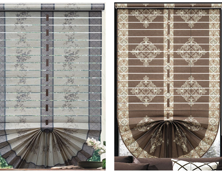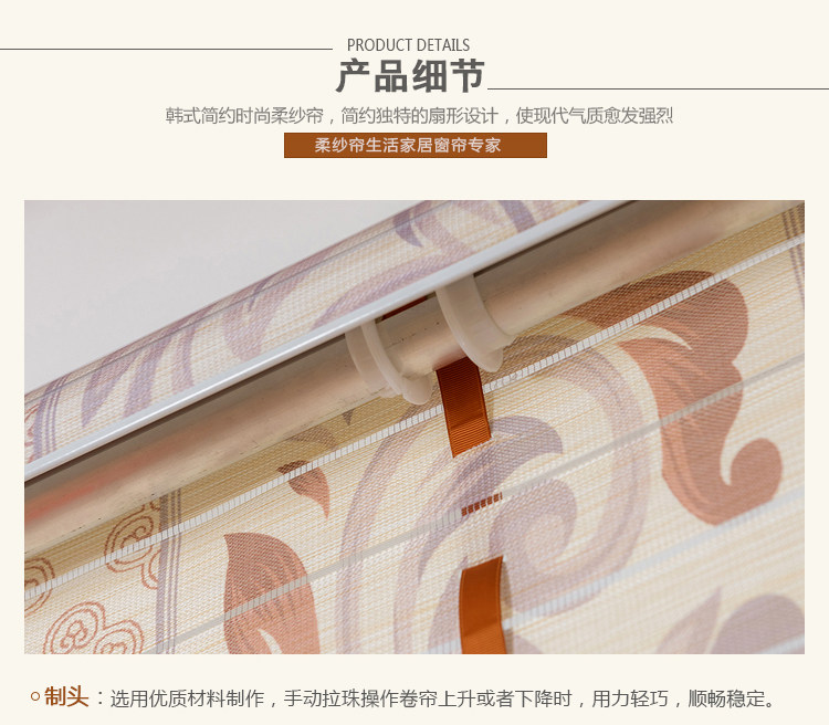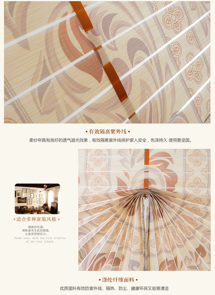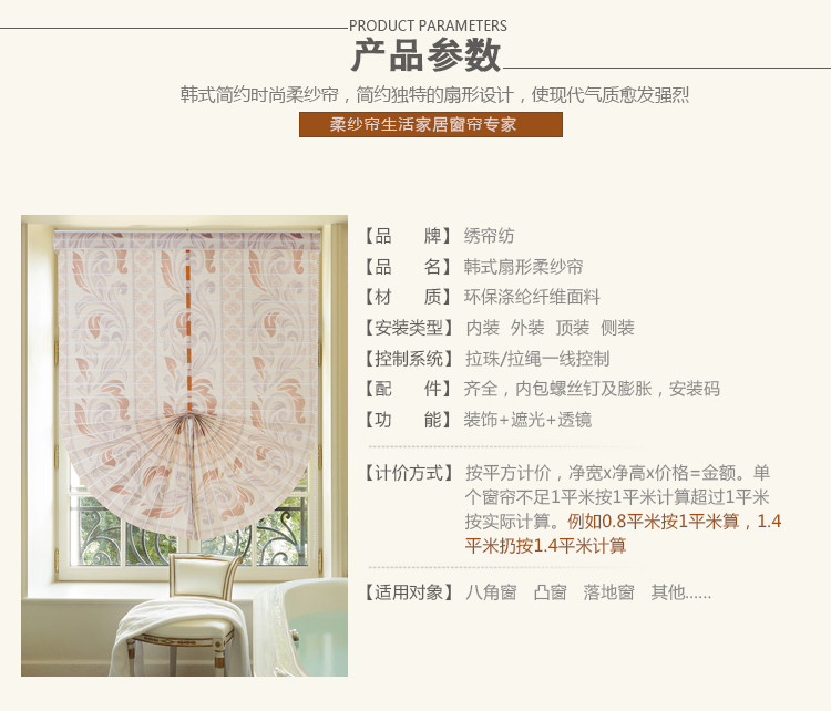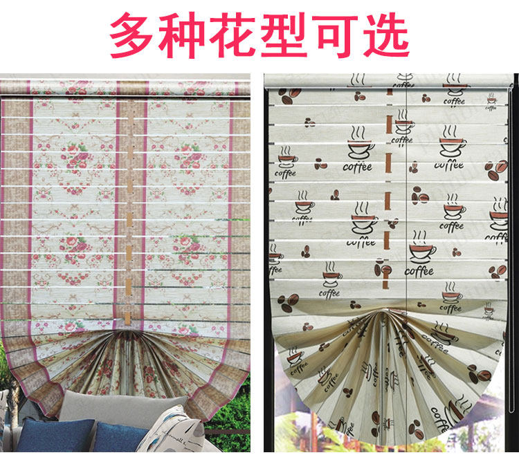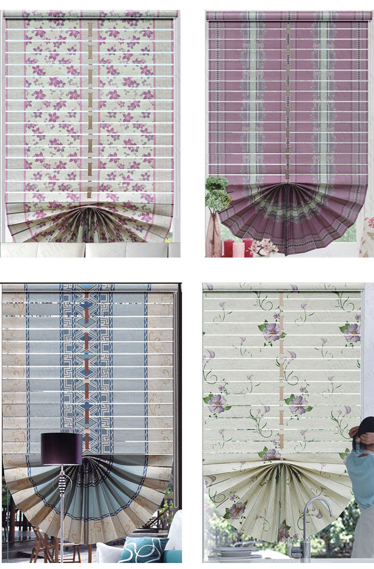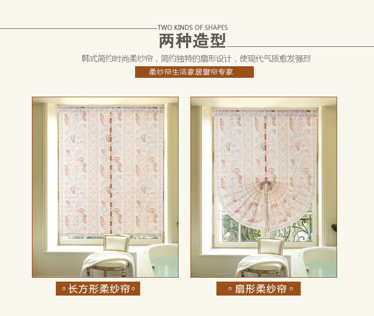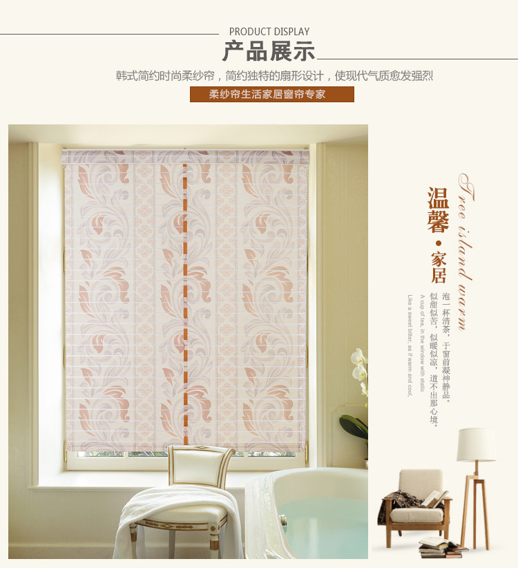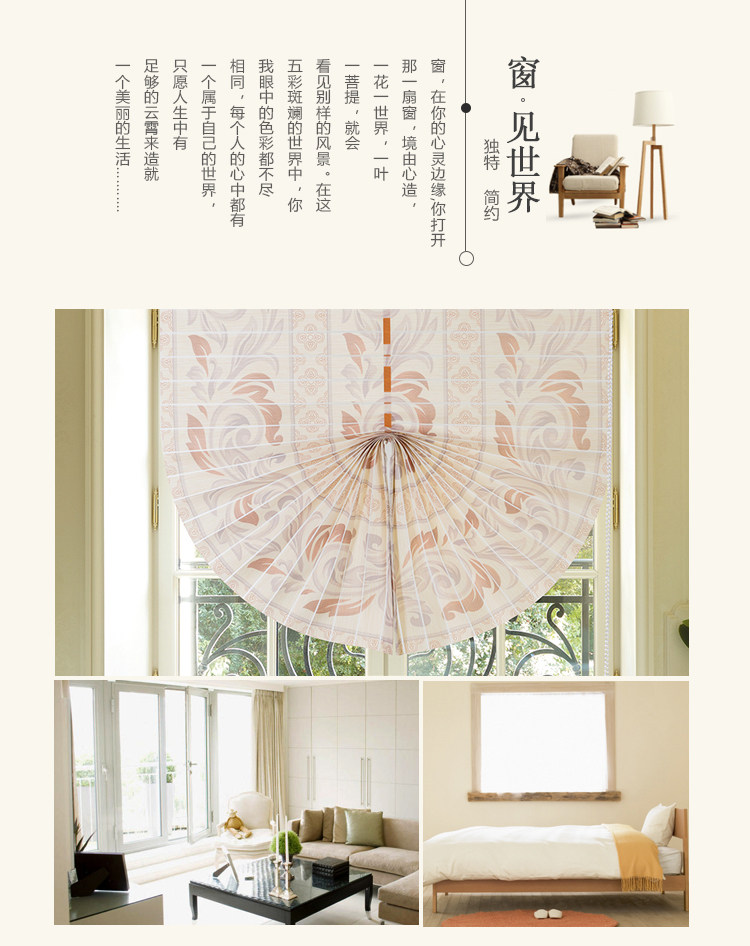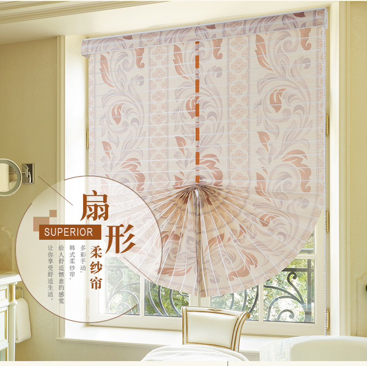 定制新中式扇形升降罗马帘柔纱帘卷帘百叶窗帘遮阳光可免打孔定制