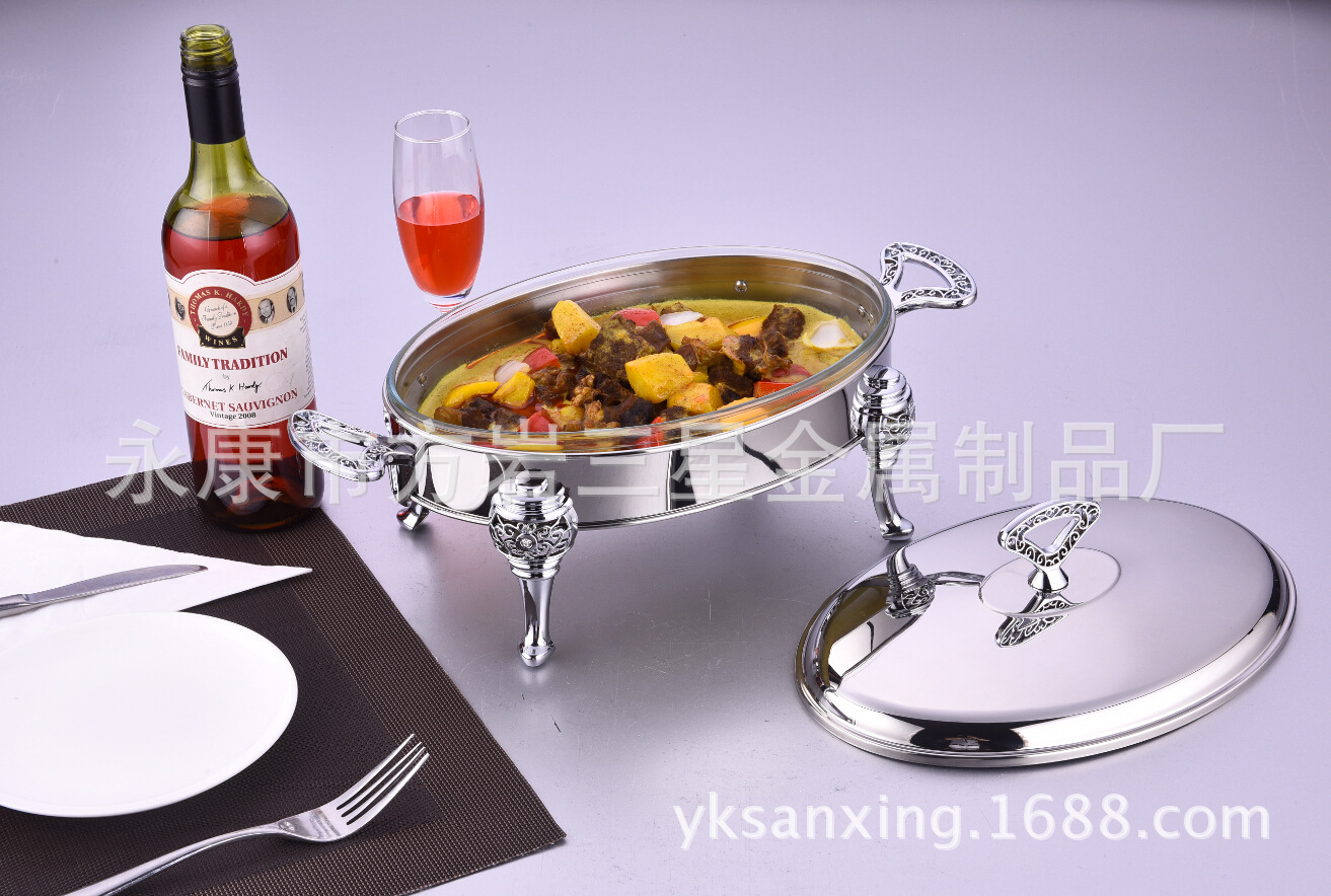 不锈钢自助餐炉可视玻璃盖烤鱼炉不锈钢自助布菲炉电加热保温炉