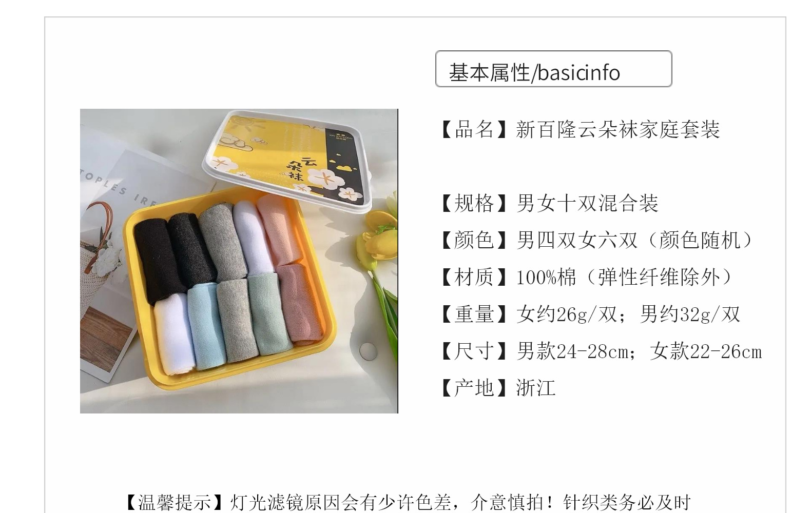 袜子新百隆云朵袜家庭套装 男女休闲运动短袜春夏季薄款浅口船袜