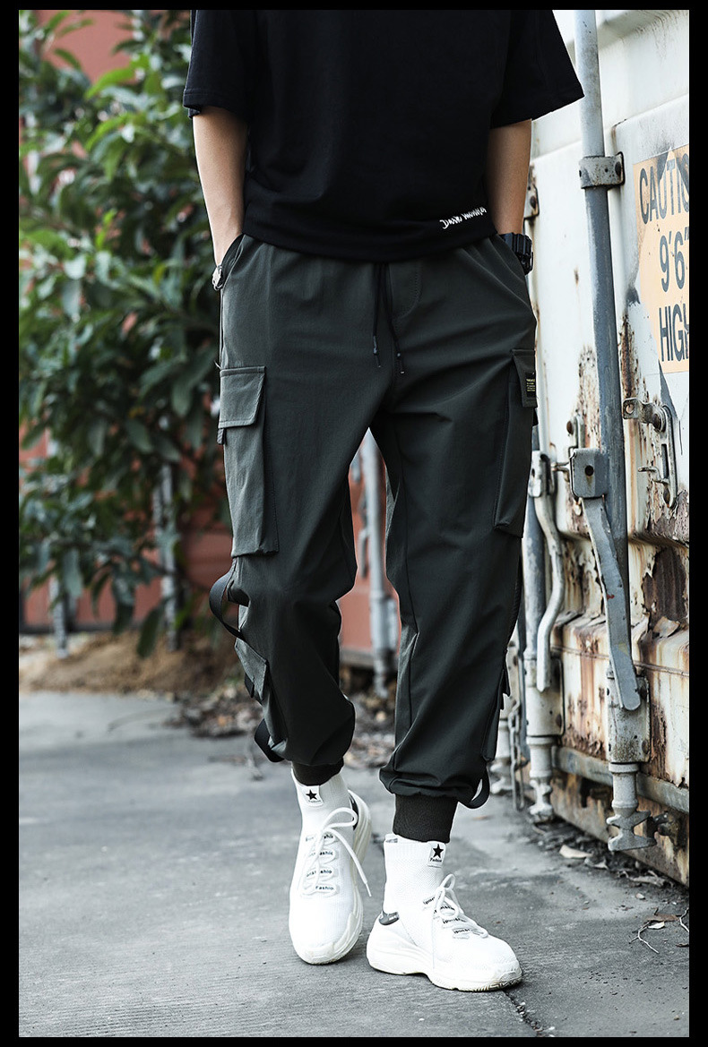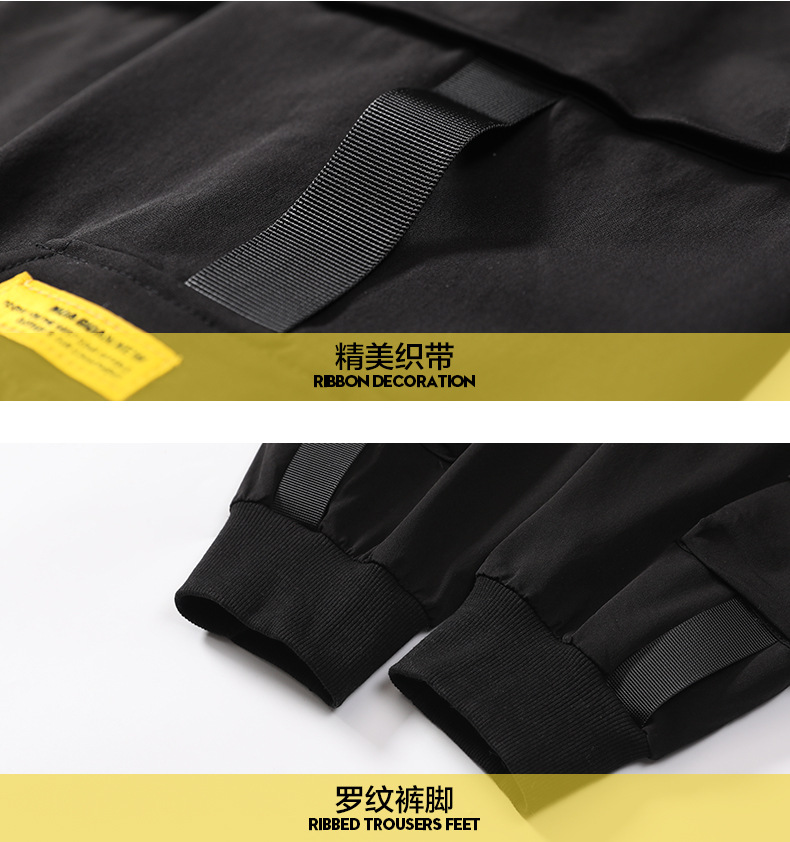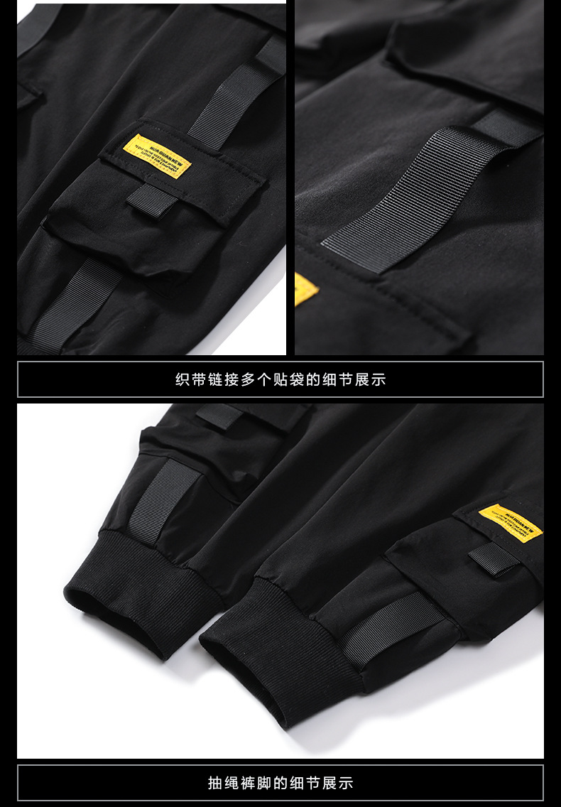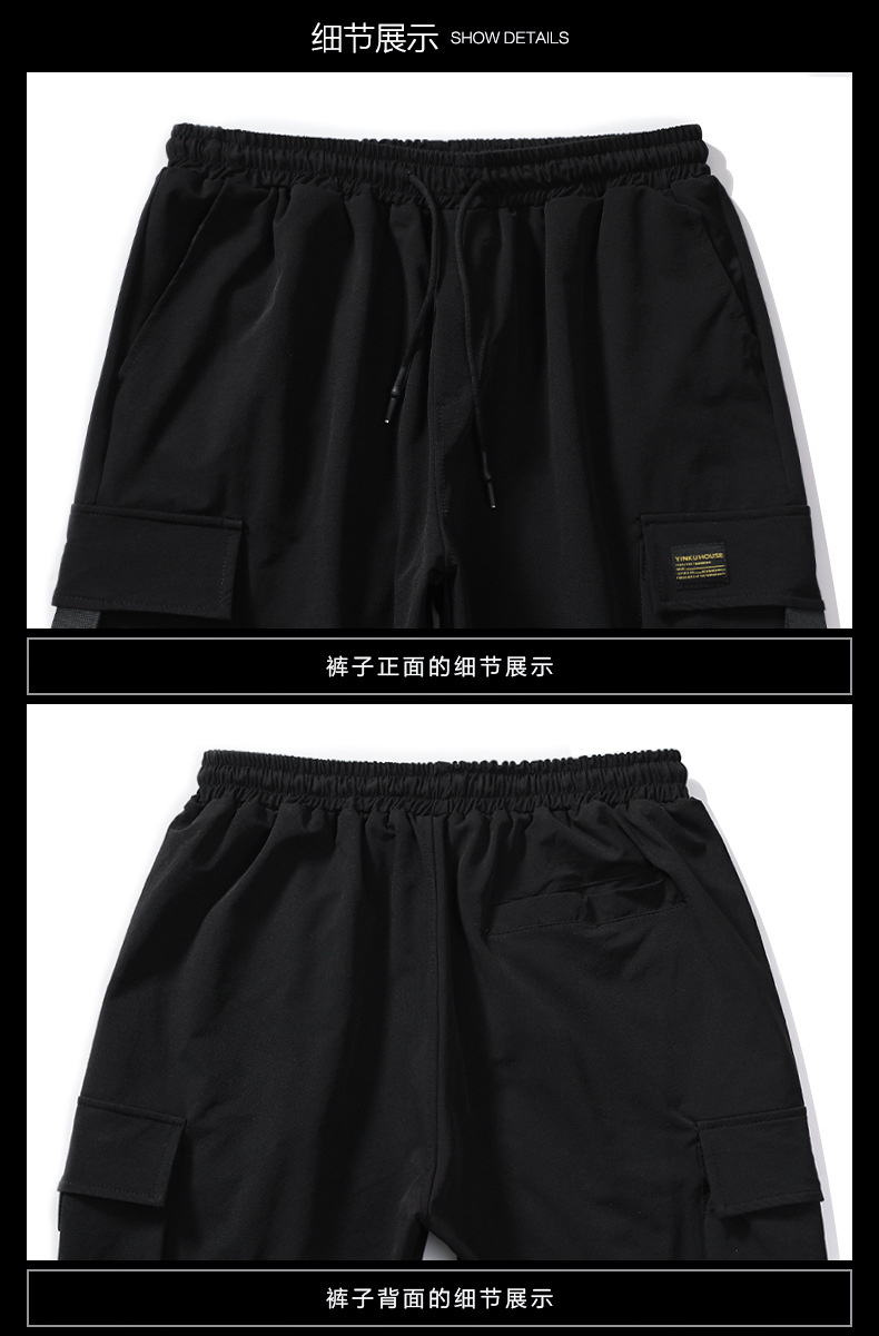 束脚工装裤男潮牌长裤ins超火九分宽松机能哈伦裤青少年休闲裤子