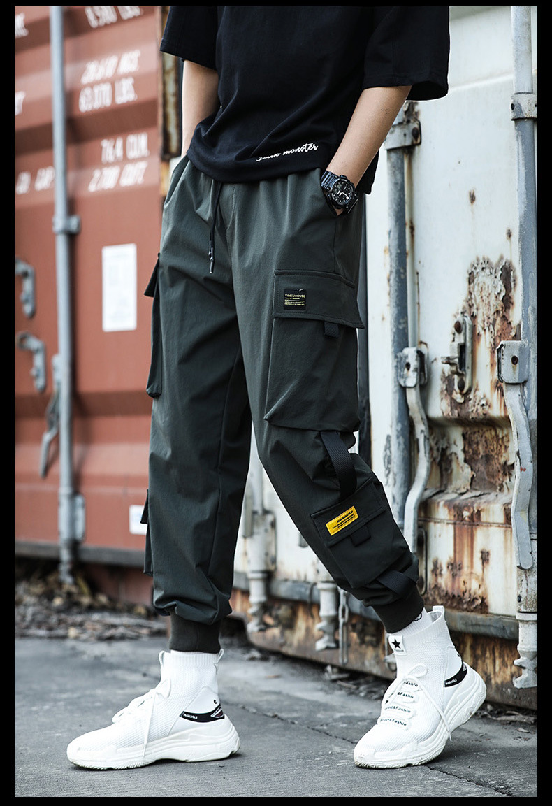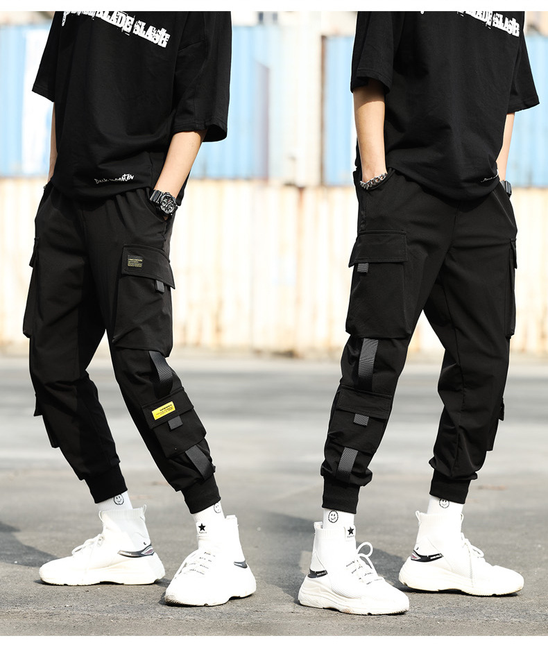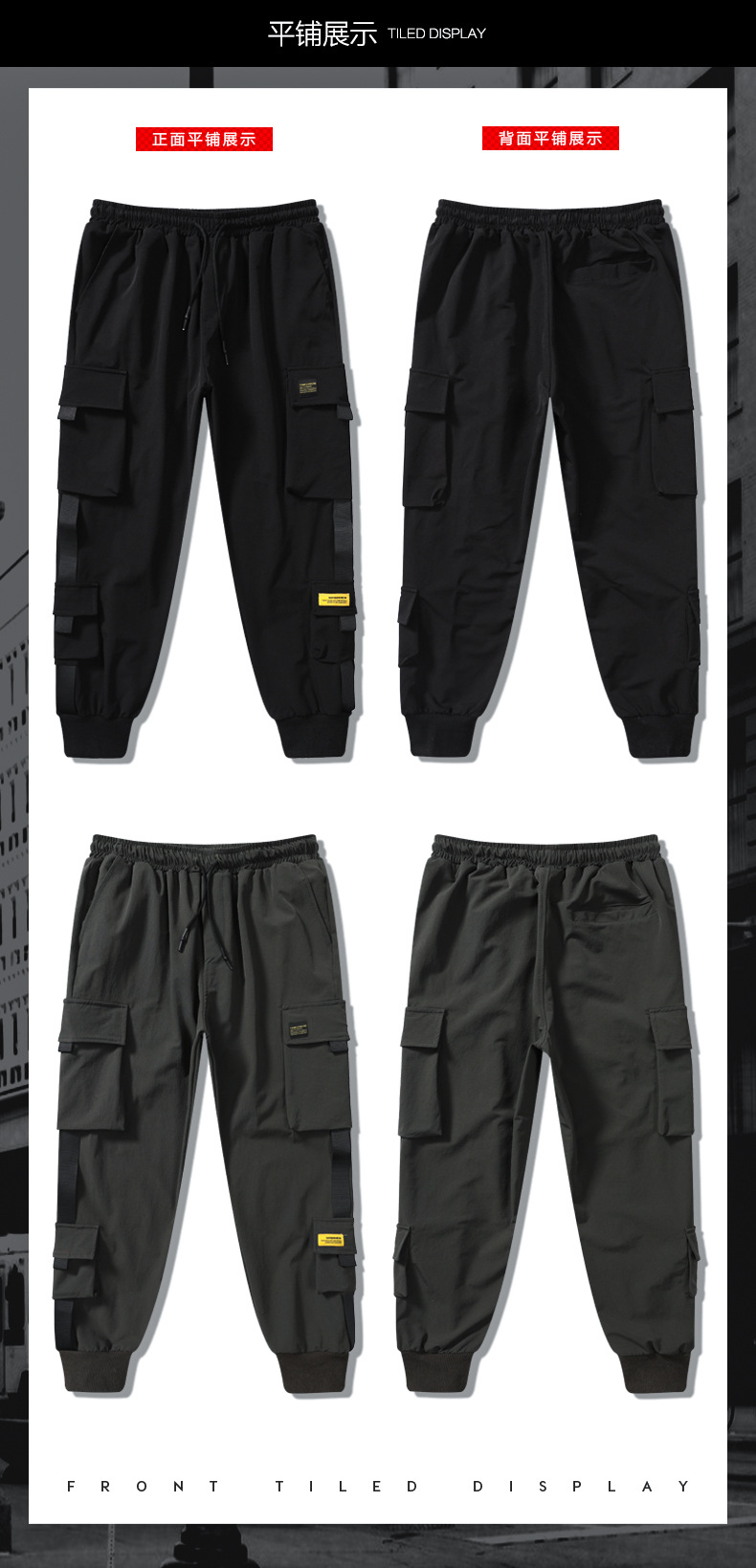 束脚工装裤男潮牌长裤ins超火九分宽松机能哈伦裤青少年休闲裤子