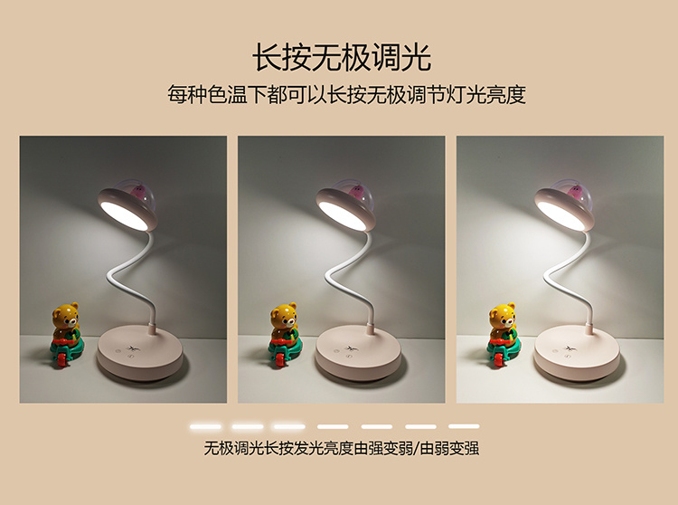 卧室小台灯夜灯柔光护眼儿童台灯三色调温无极调光电池可拆卸