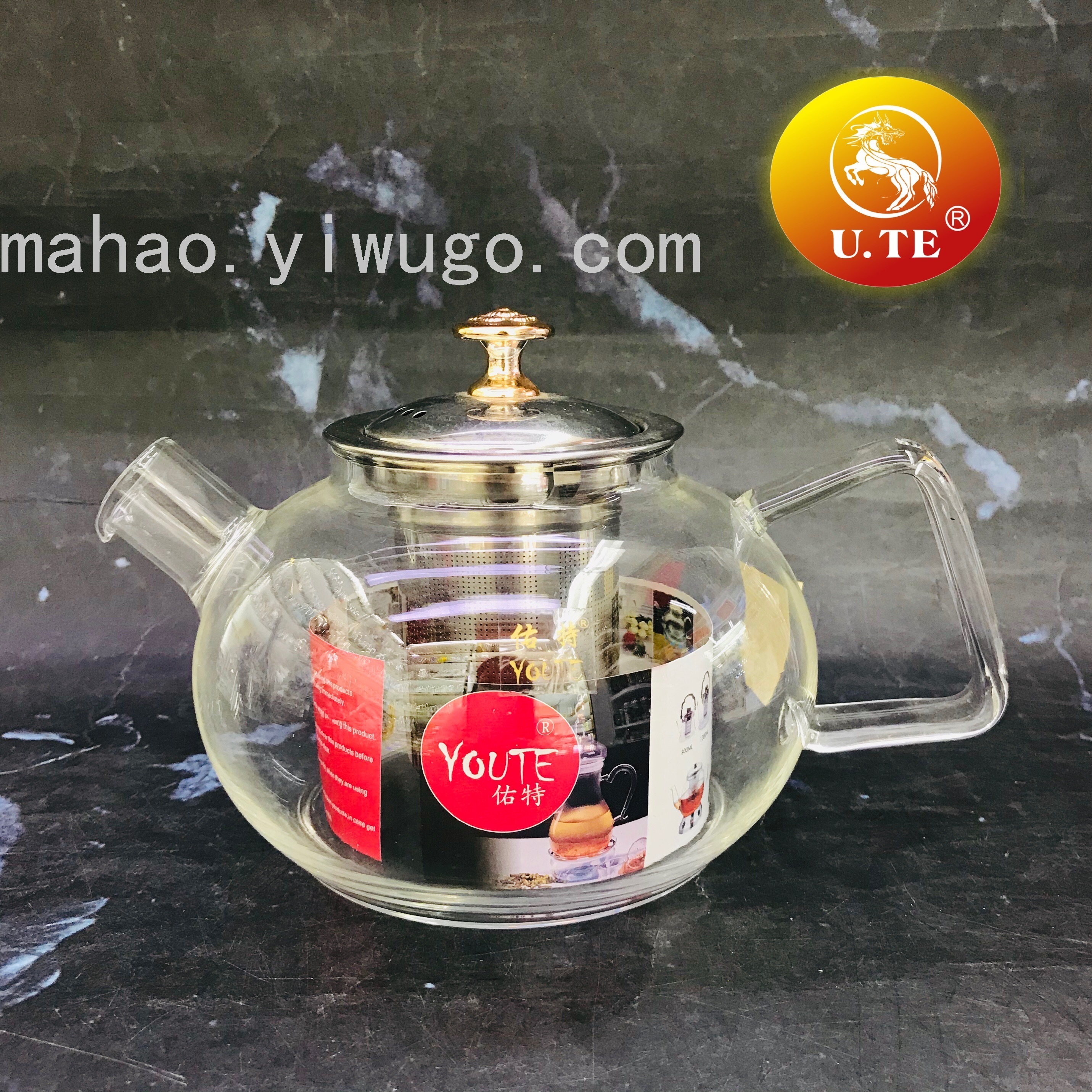 耐高温高硼硅玻璃茶壶不锈钢滤网短嘴泡茶壶
