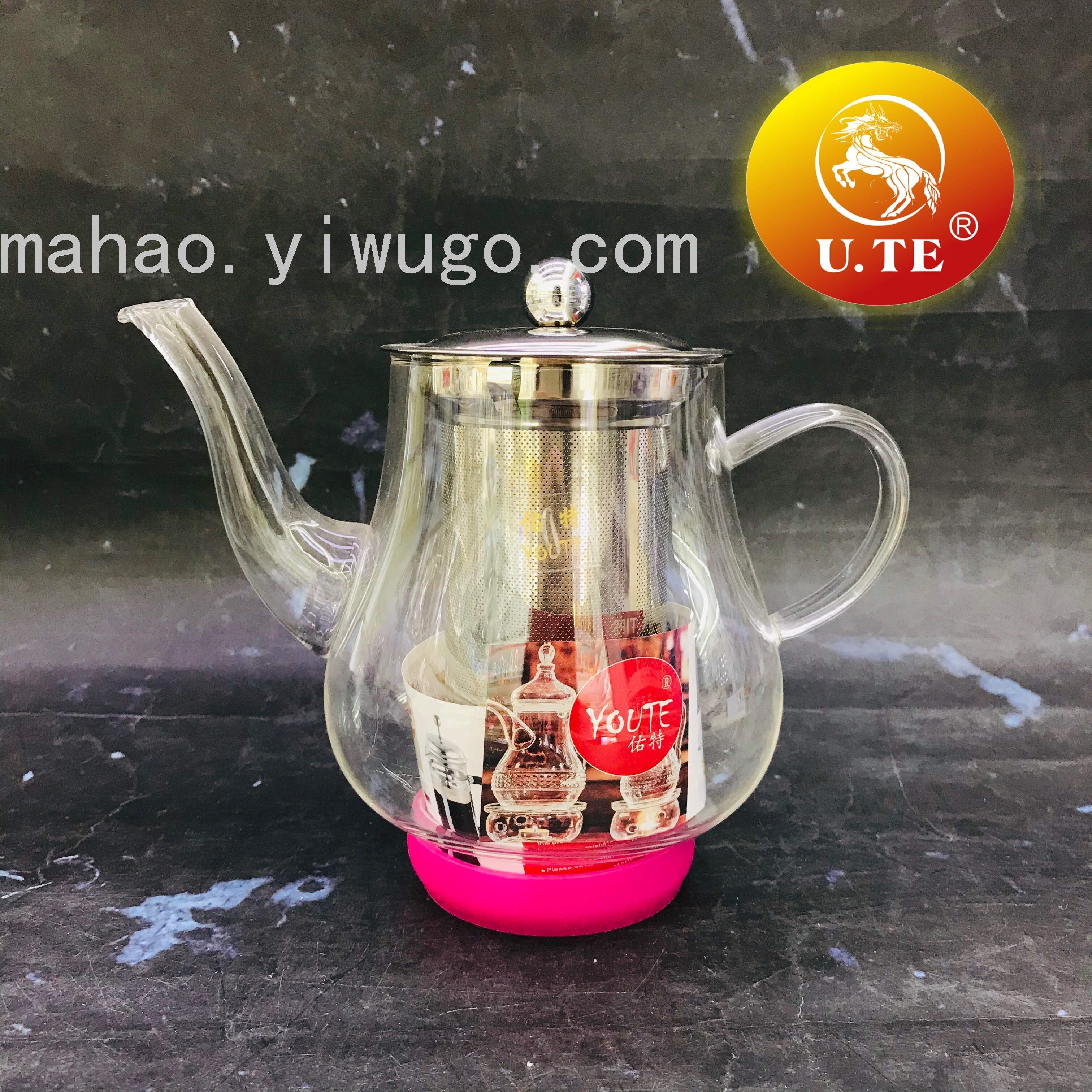 耐高温高硼硅玻璃茶壶不锈钢滤网泡茶壶带硅胶垫