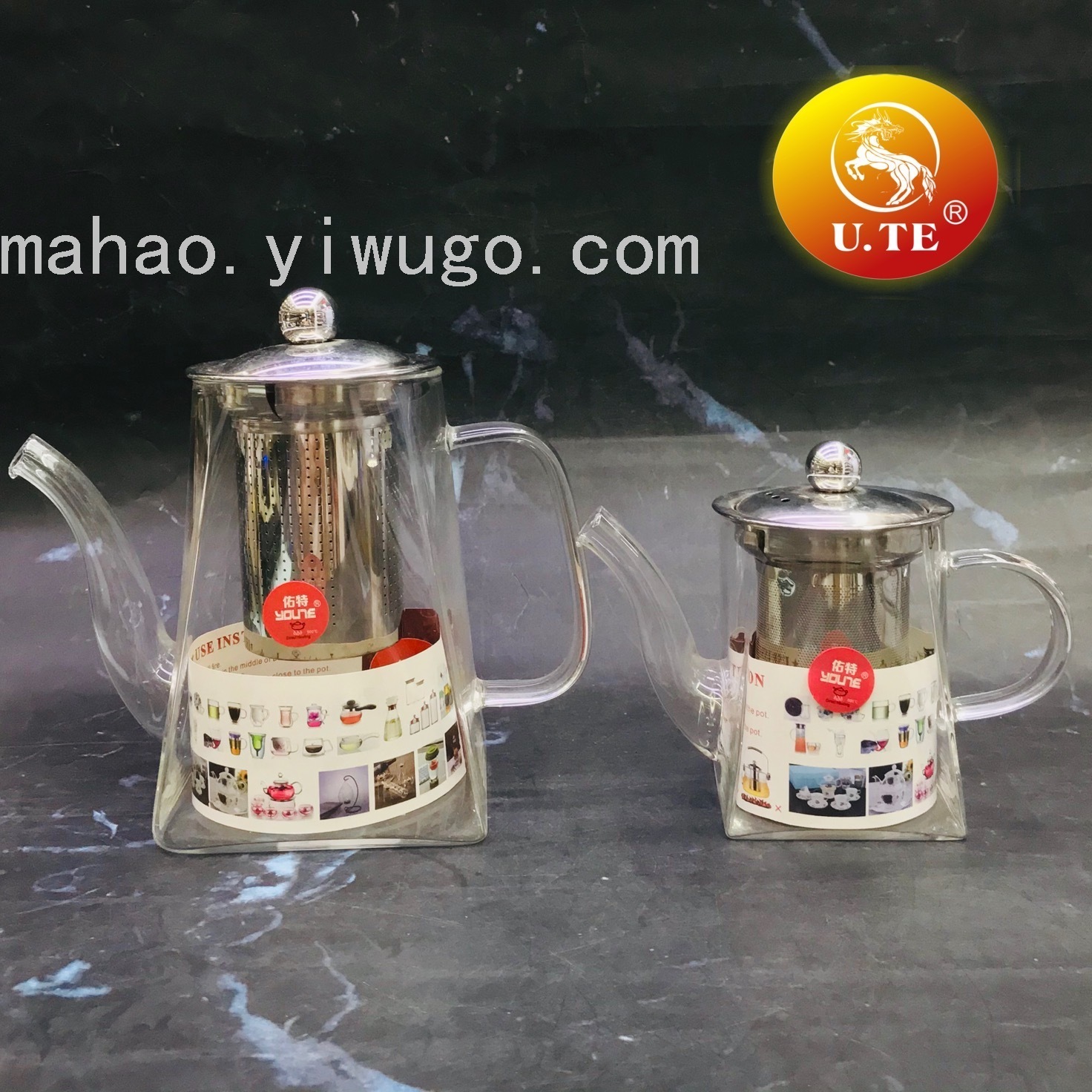 耐高温高硼硅玻璃茶壶不锈钢滤网方壶泡茶壶