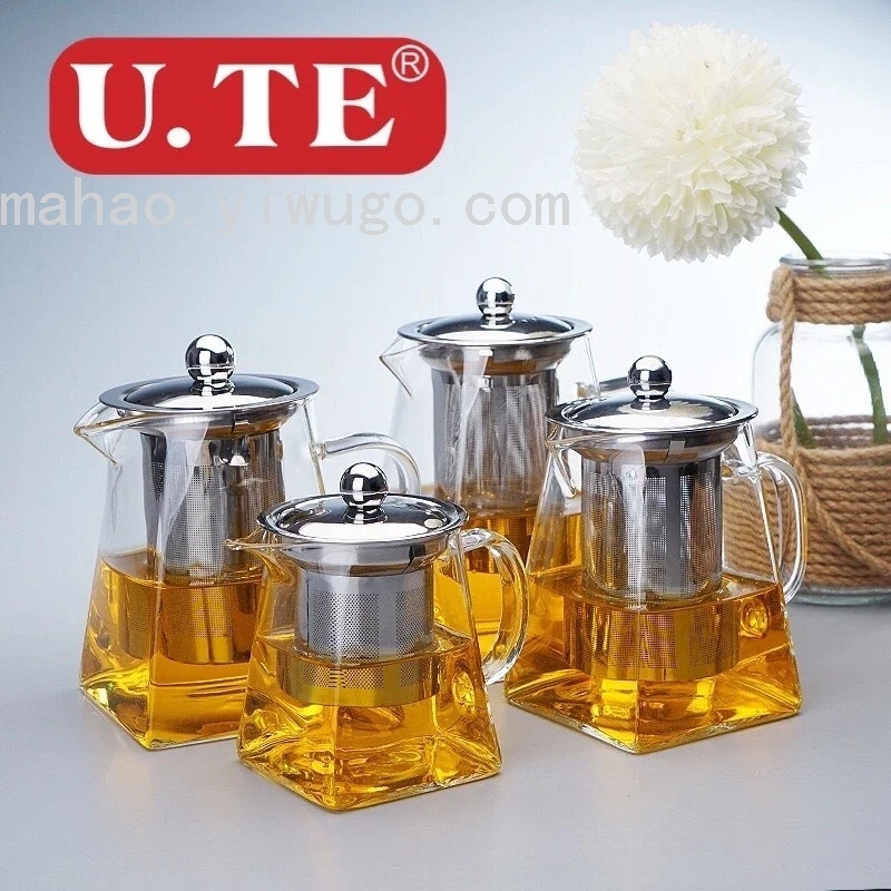 耐高温高硼硅玻璃茶壶不锈钢滤网方壶泡茶壶