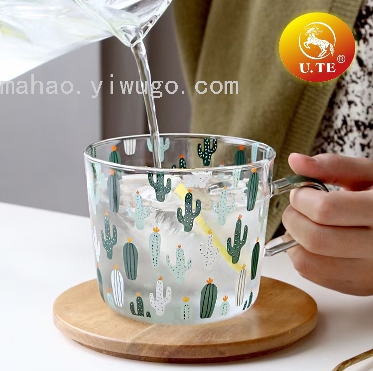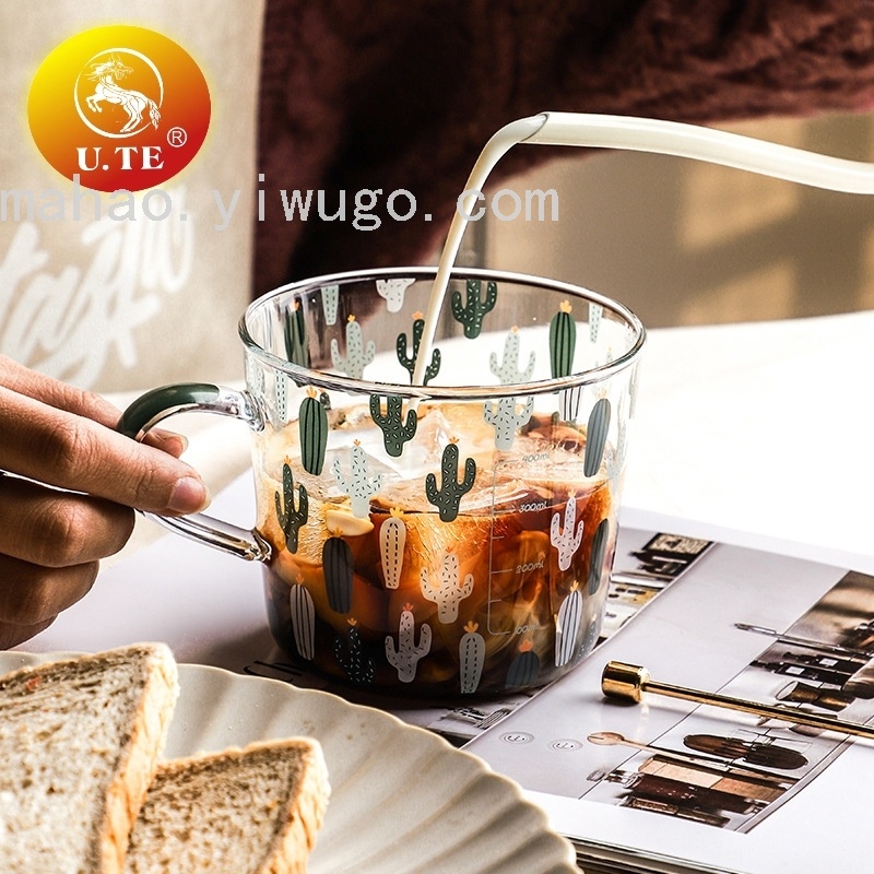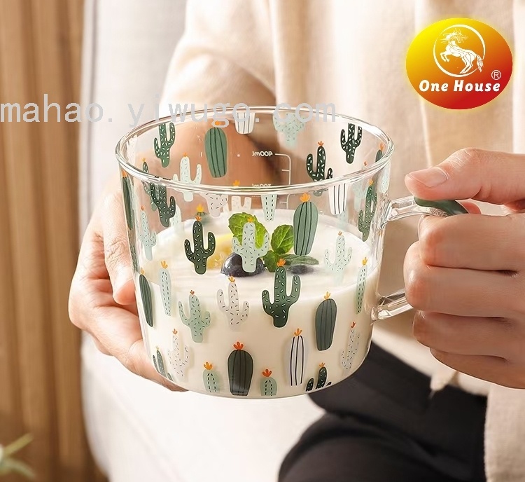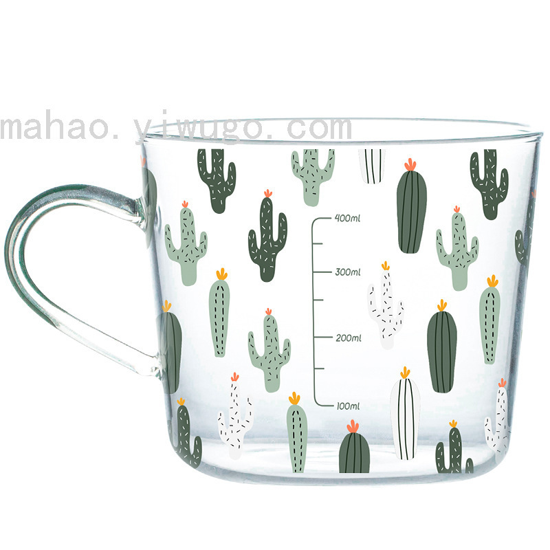 单层仙人掌玻璃马克杯早餐杯带刻度