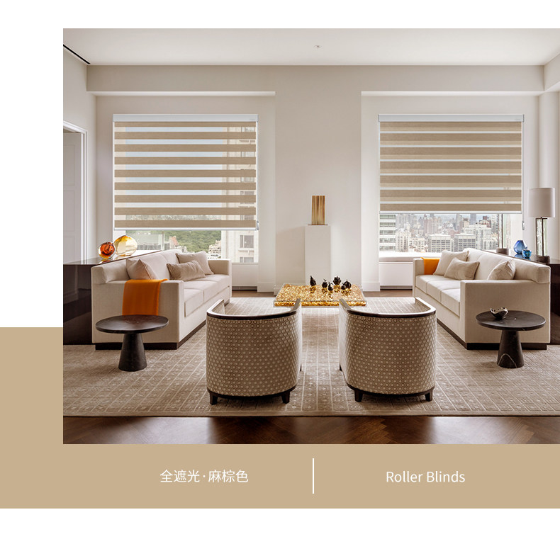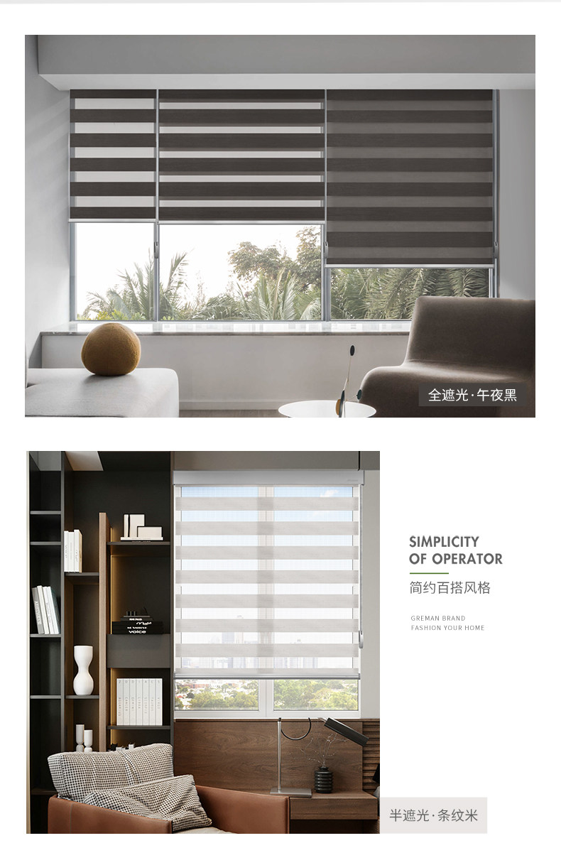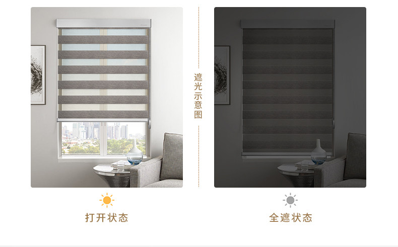 厂家定制款柔纱帘斑马帘进口面料全遮光静音拉绳遮光窗帘卷帘百叶