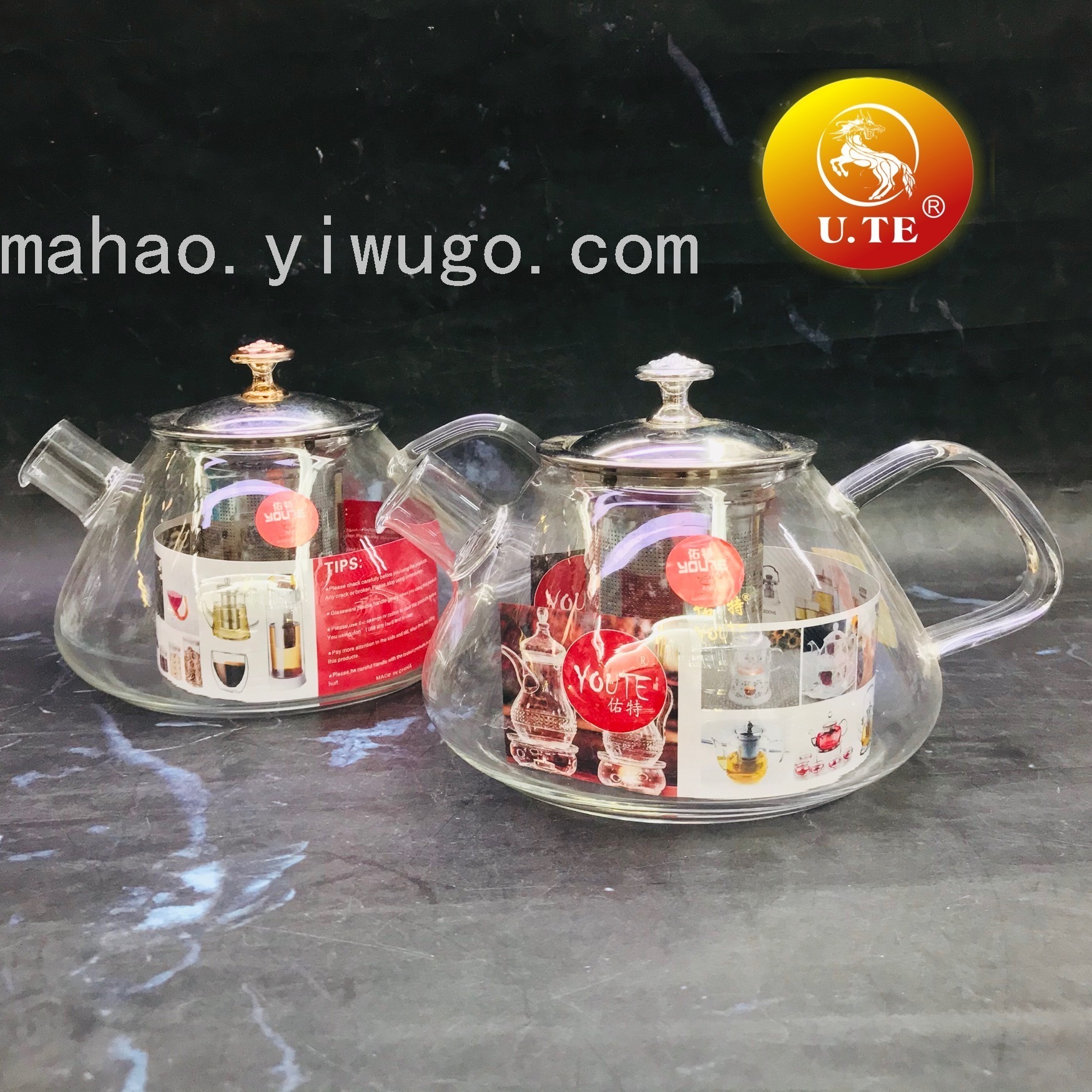 耐高温高硼硅玻璃茶壶不锈钢滤网短嘴泡茶壶