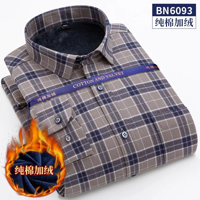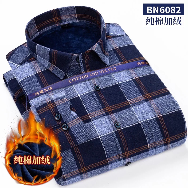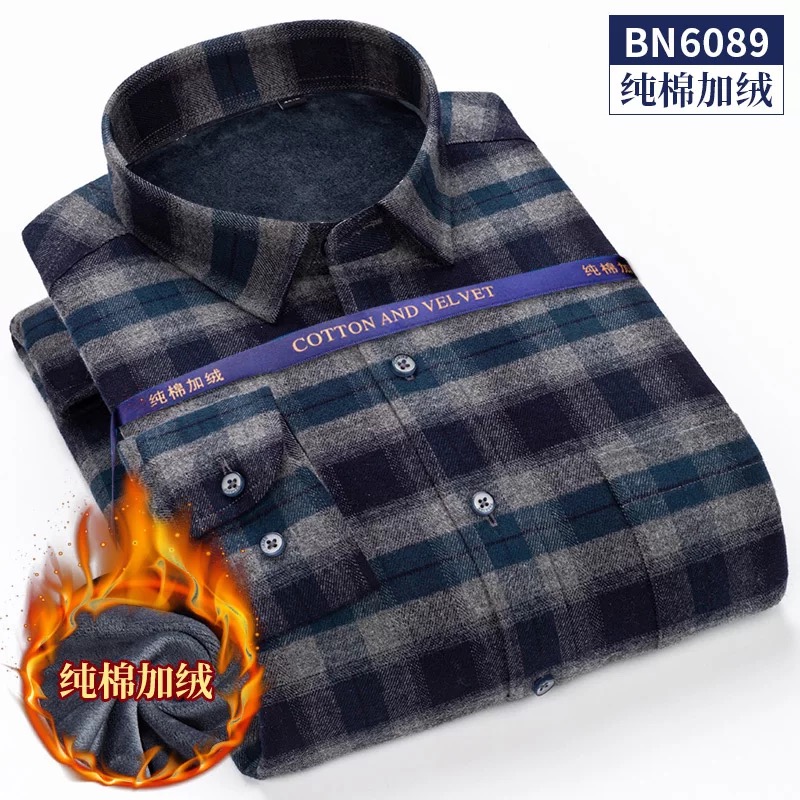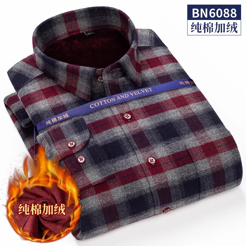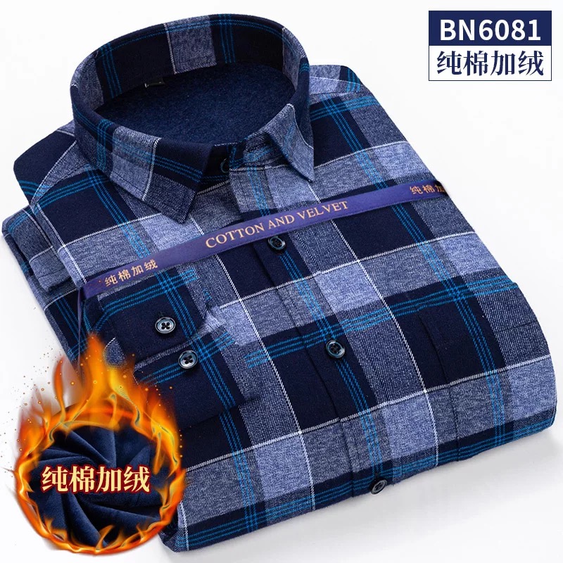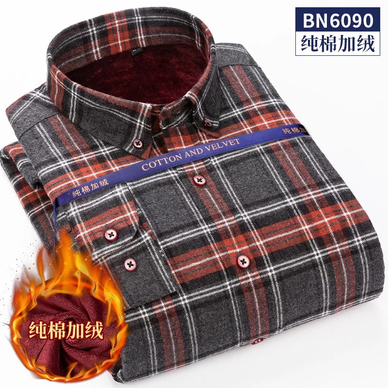 保暖衬衫冬季纯棉磨毛加绒加厚衬衫保暖长袖衬衫加厚爸爸格子衬衫