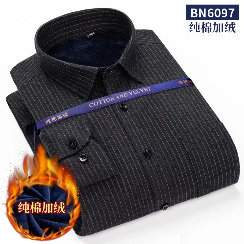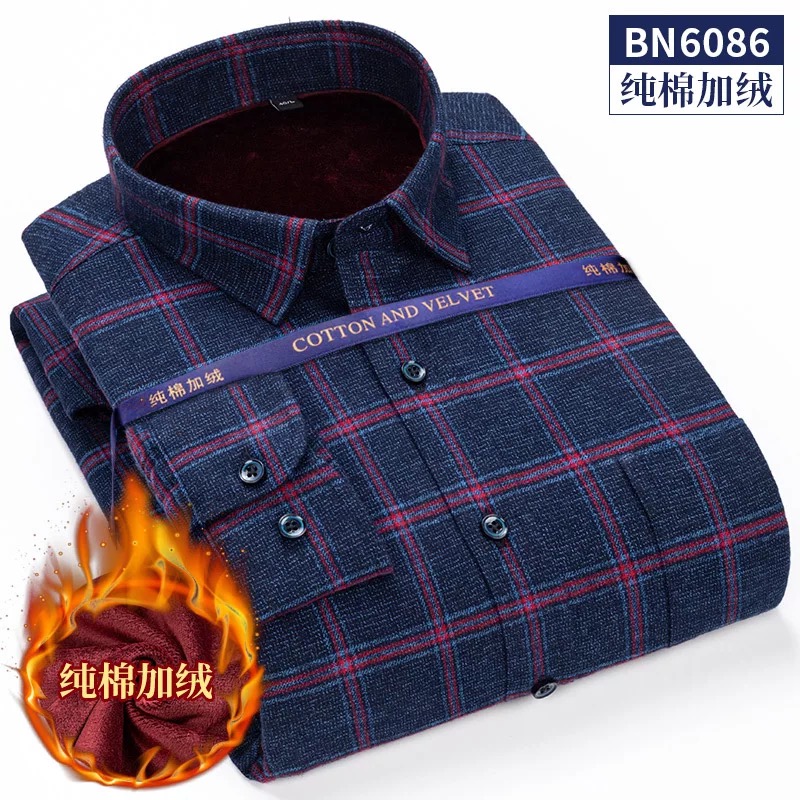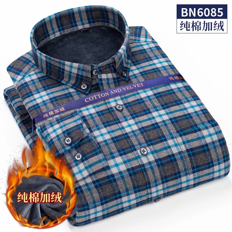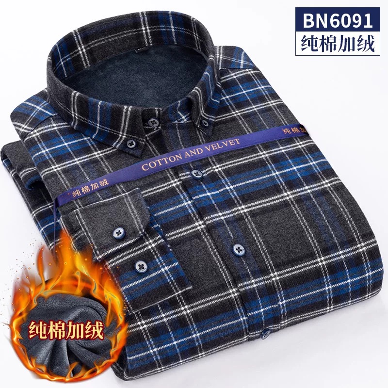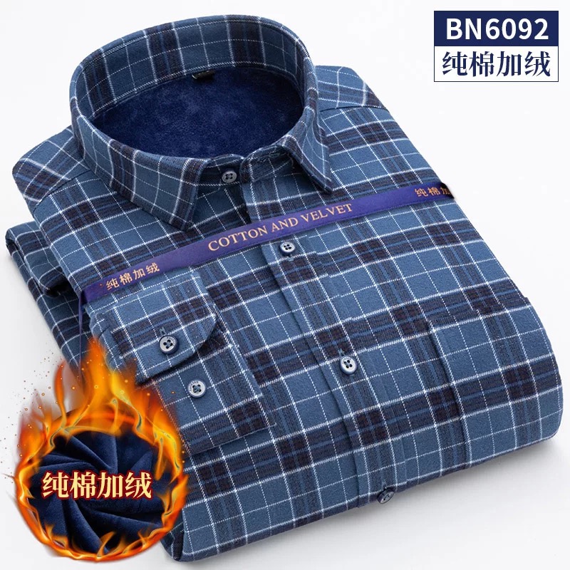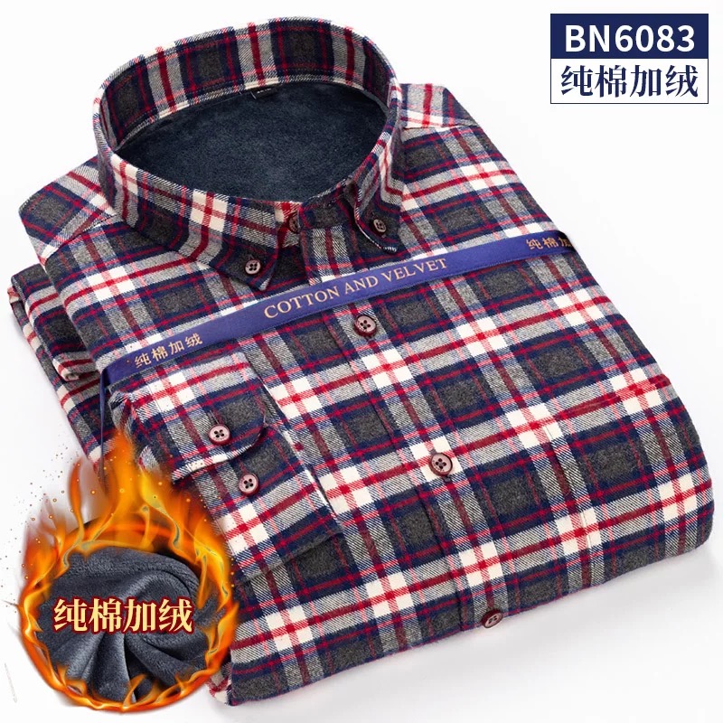保暖衬衫冬季纯棉磨毛加绒加厚衬衫保暖长袖衬衫加厚爸爸格子衬衫