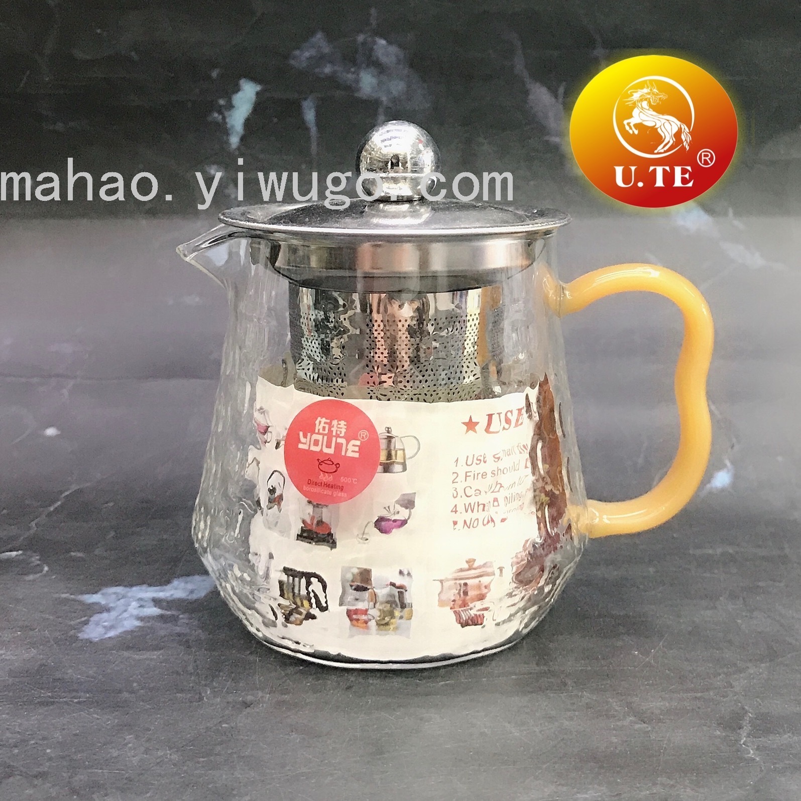 耐高温高硼硅玻璃茶壶陶瓷手柄不锈钢滤网泡茶壶