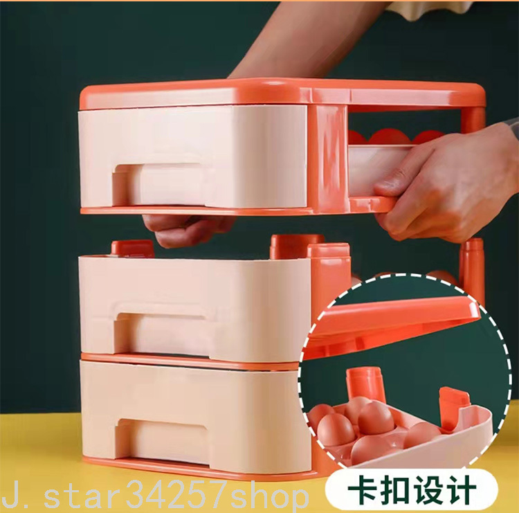 三层抽屉式鸡蛋收纳盒多层式冰箱鸡蛋收纳盒20枚装竖立存放鸡蛋盒