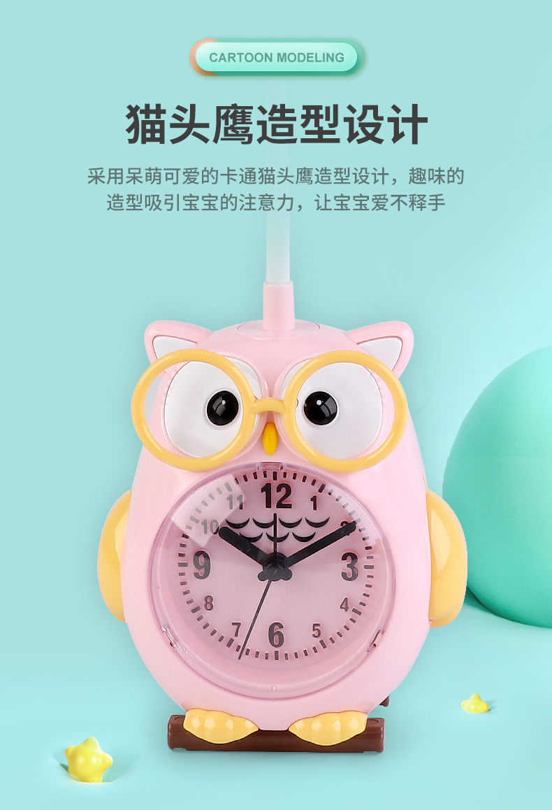 卡通闹钟台灯卧室床头温馨可爱猫头鹰调光男孩女孩儿童台灯