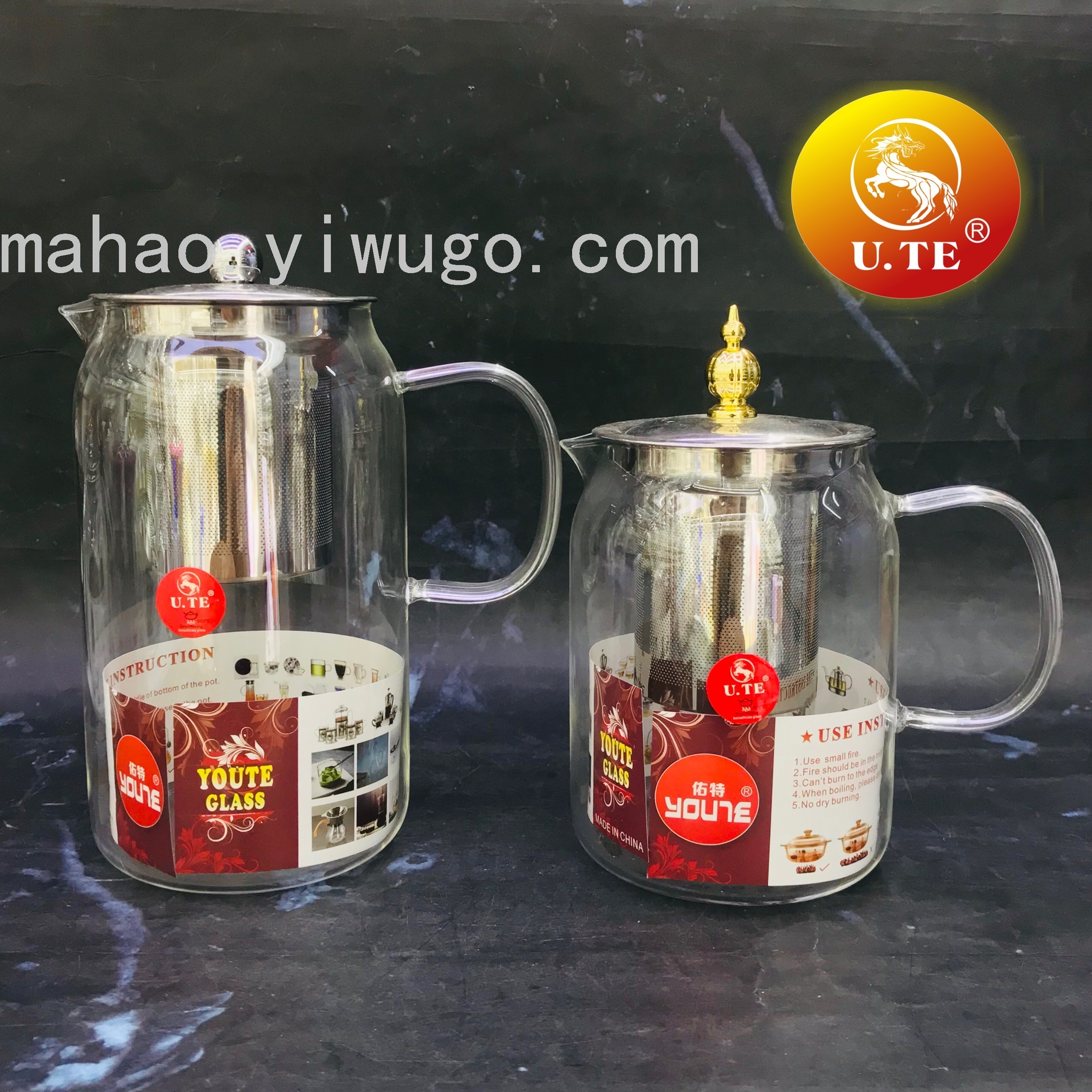 耐高温高硼硅玻璃茶壶不锈钢滤网短嘴泡茶壶