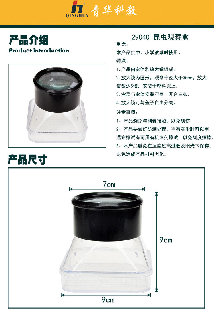 青华29040 昆虫观察盒器可拆卸放大小虫子小动物生物科教仪器学生