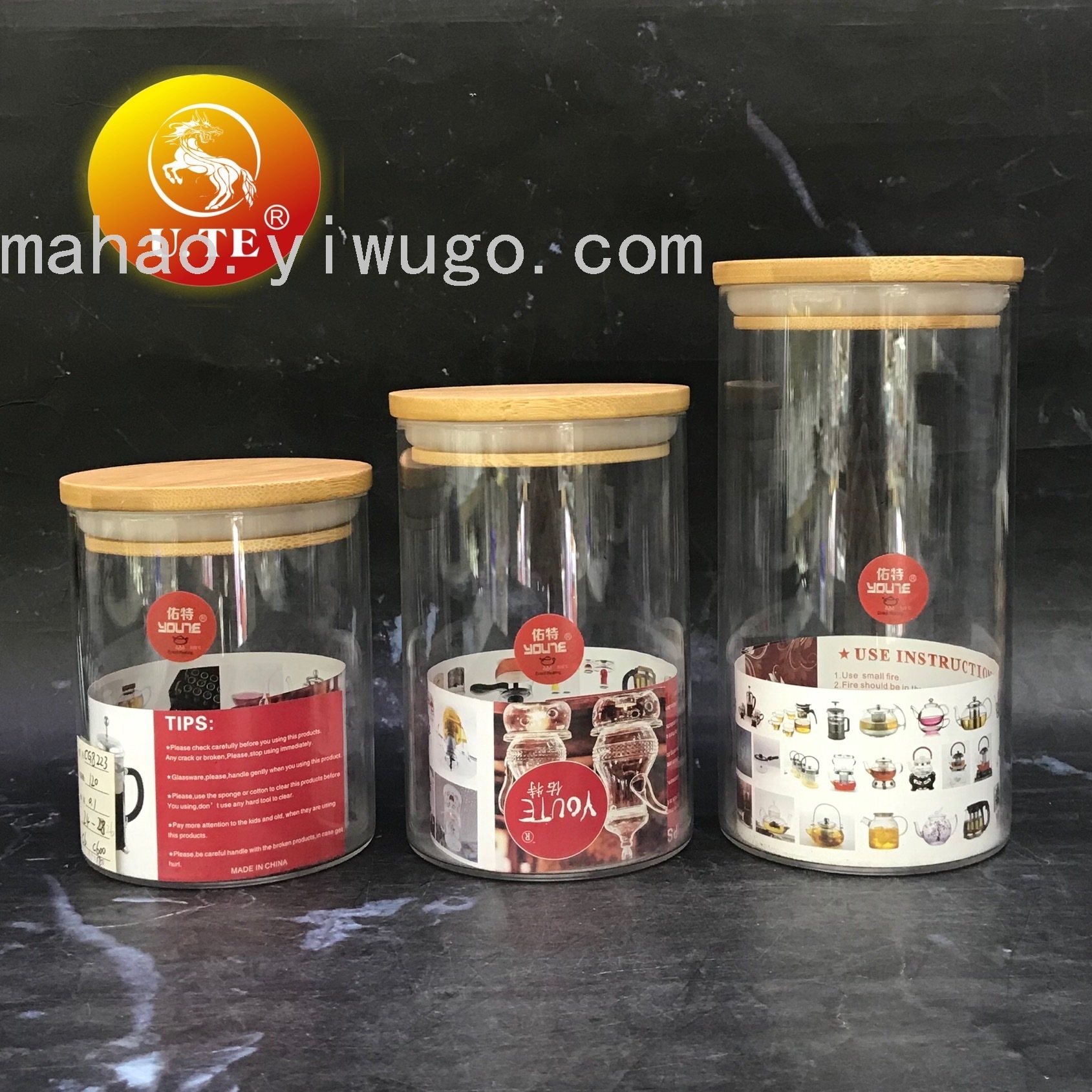 竹盖直筒玻璃密封罐