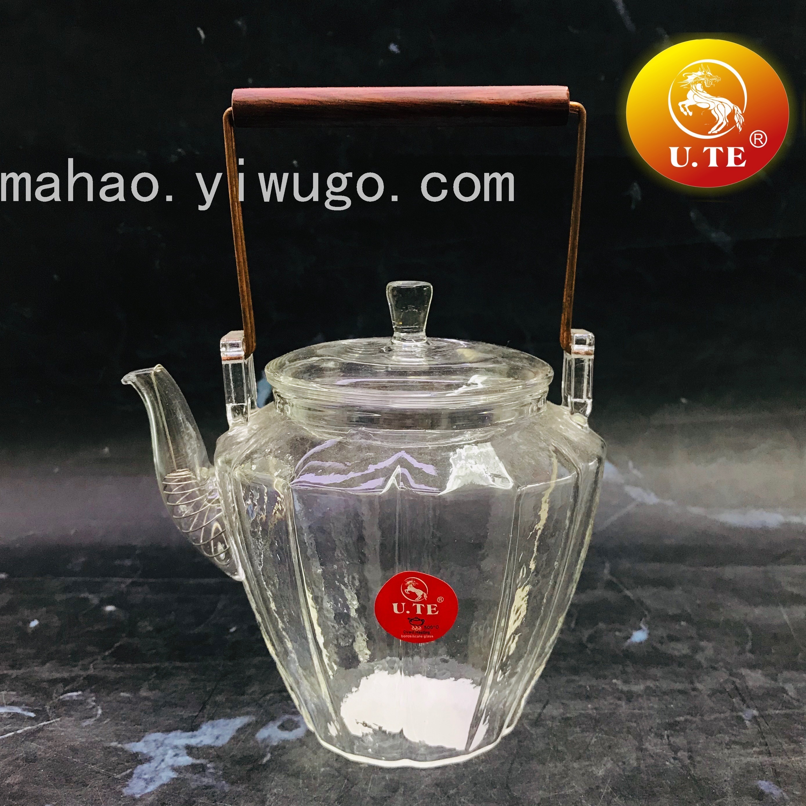 high temperature resistant direct fire borosilicate glass lifting beam teapot