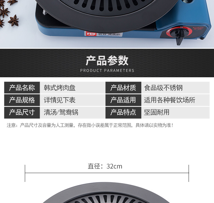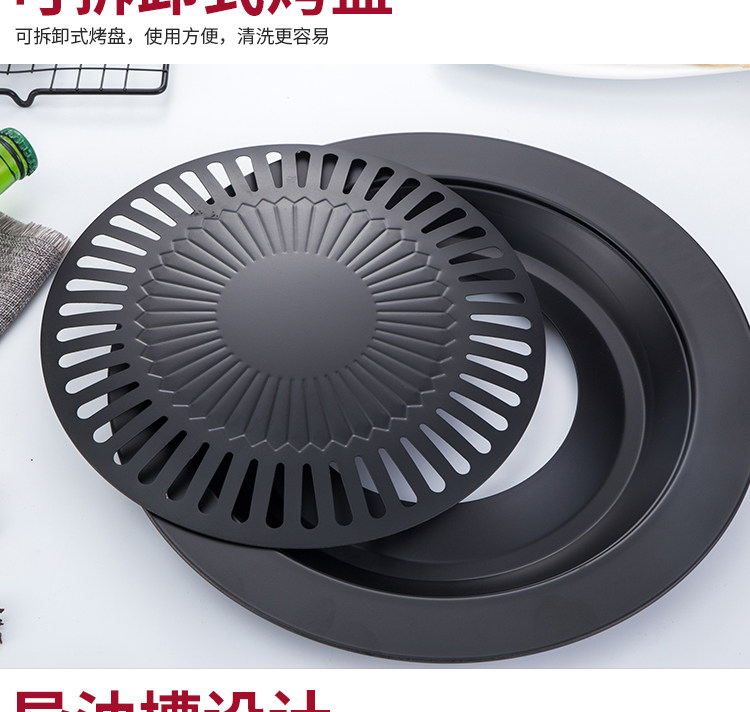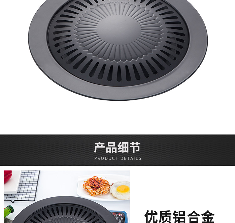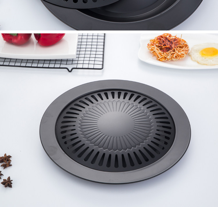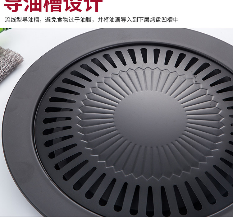 韩式烧烤盘烤肉盘卡式炉烤盘家用无烟不粘圆形煎烤盘加厚厂家直销
