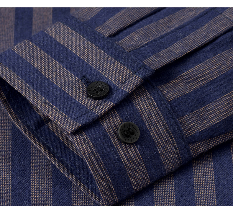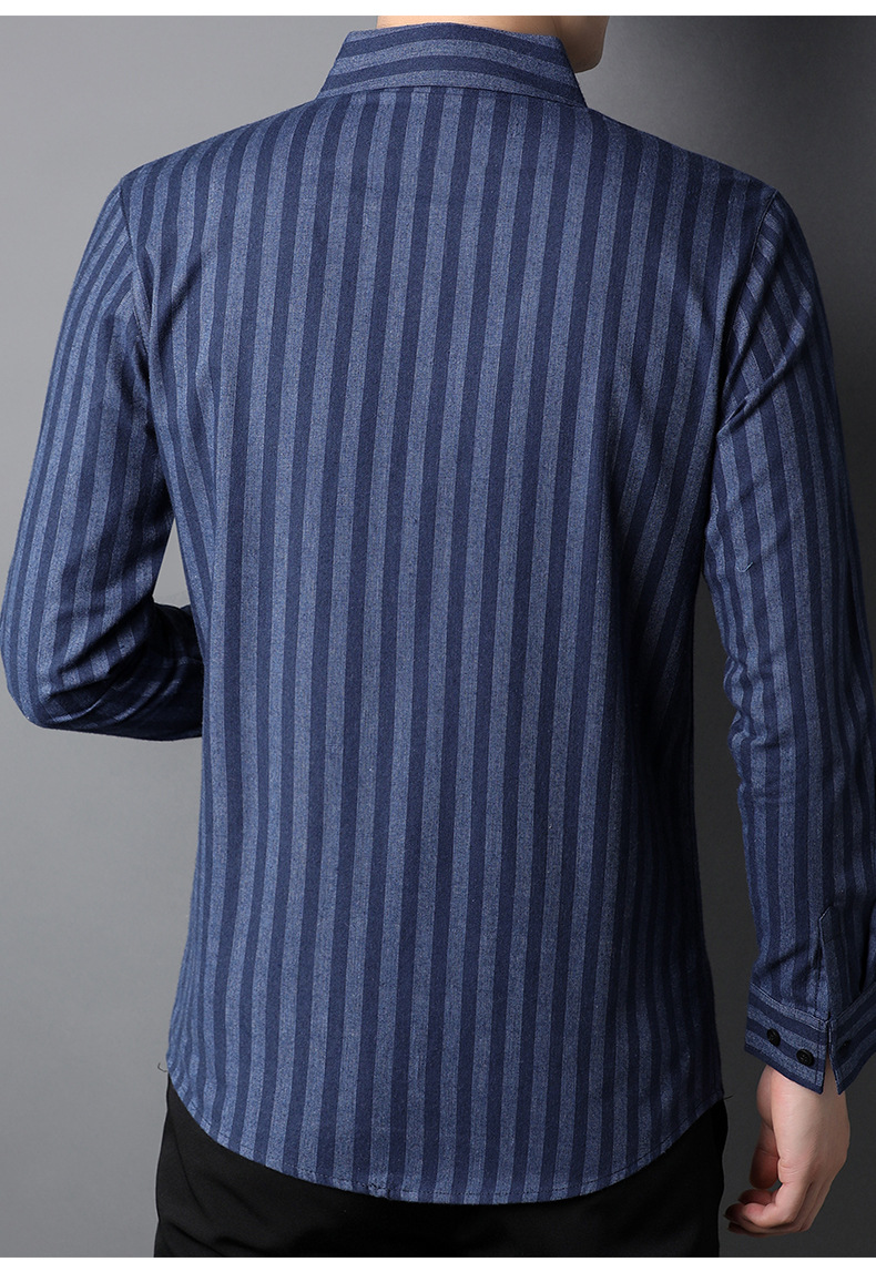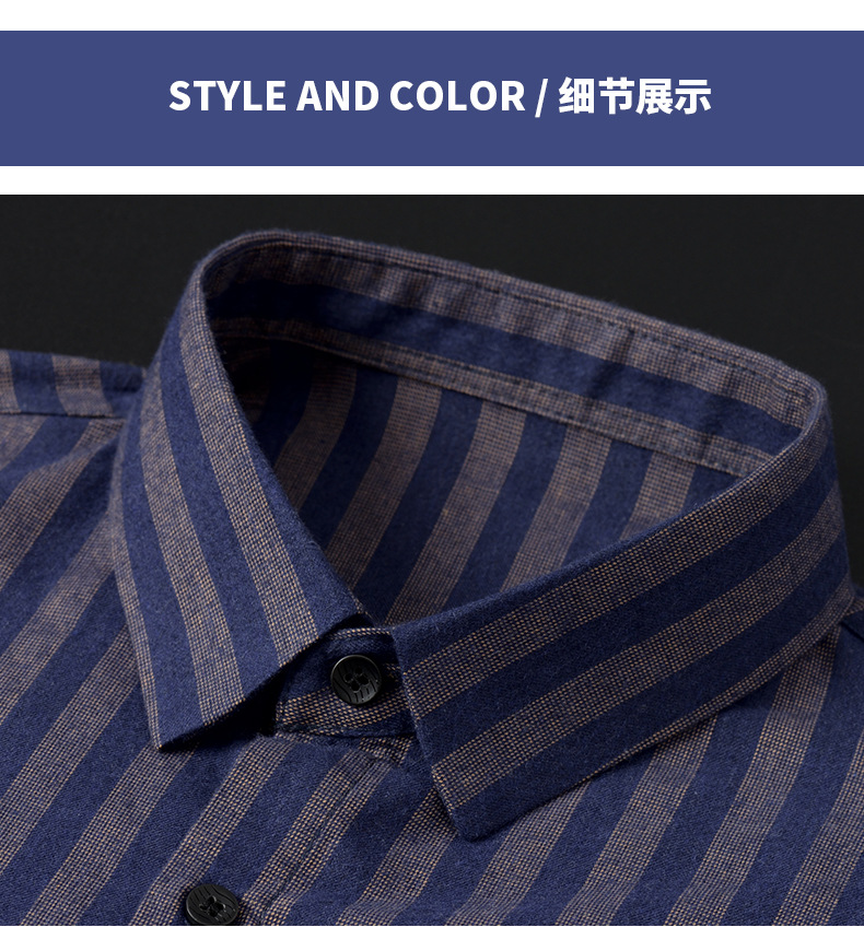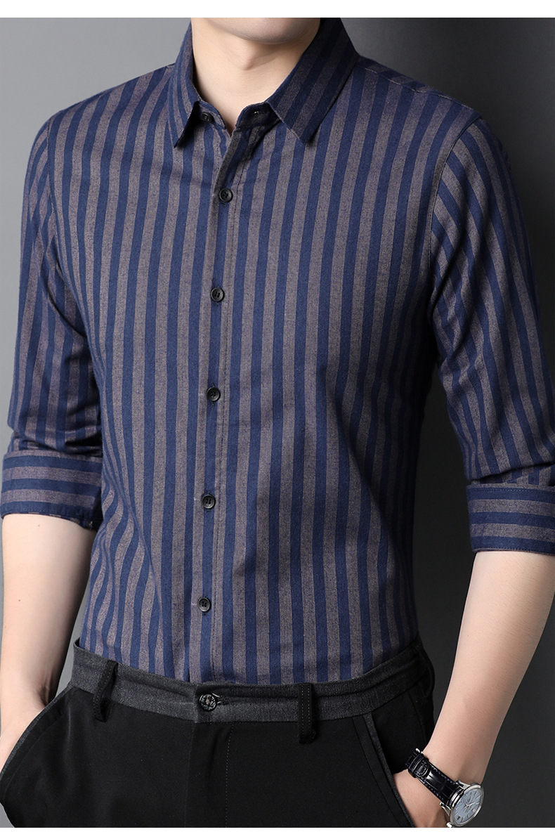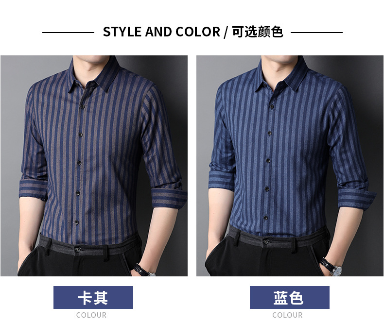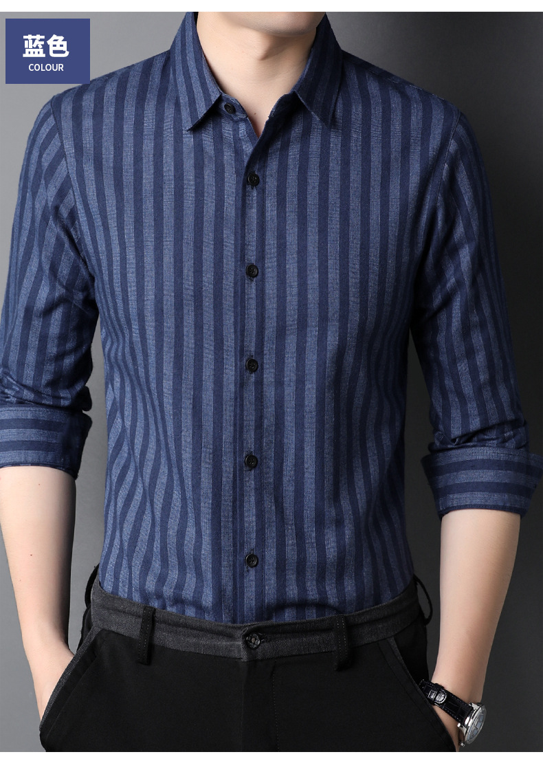 一件代发条纹衬衫男长袖春秋季休闲免烫纯棉衬衣中年男装全棉寸衫