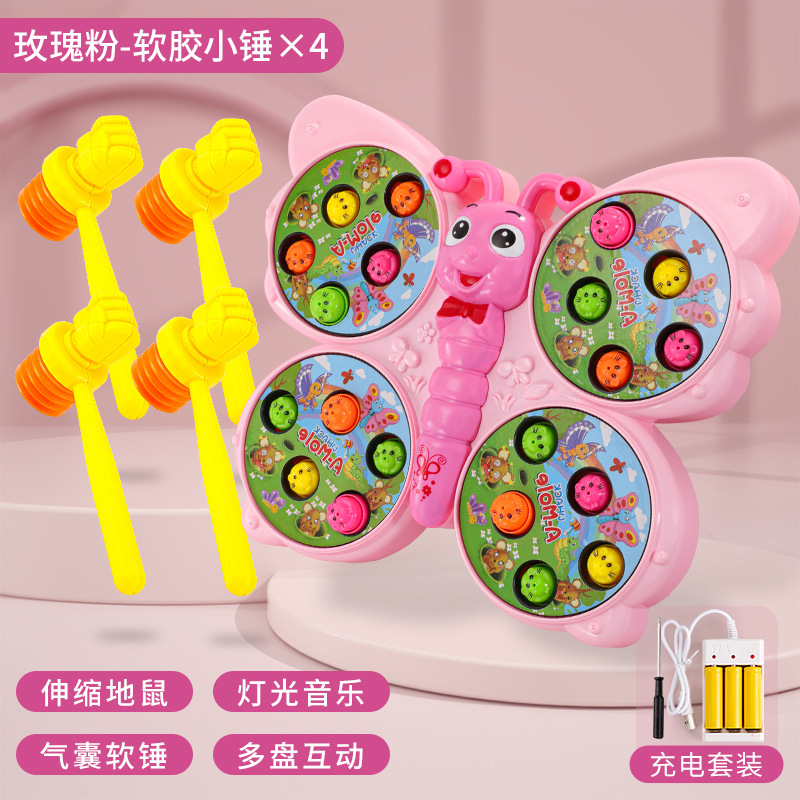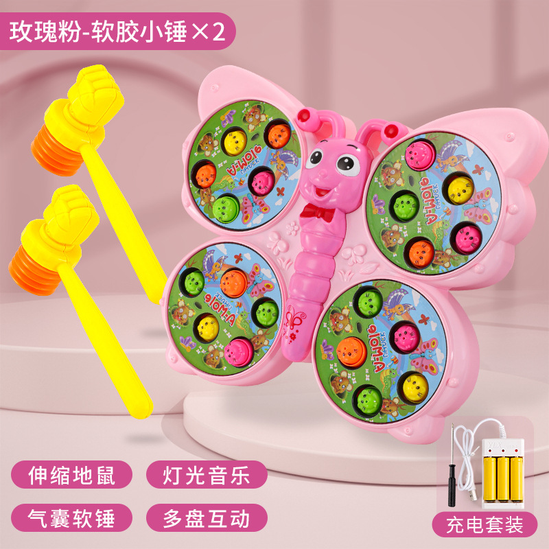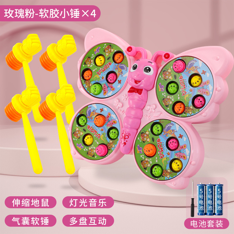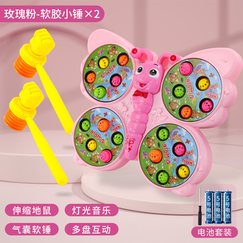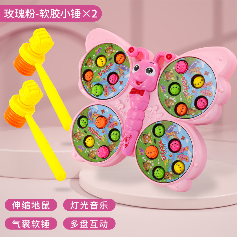 儿童趣味打地鼠玩具萌趣蝴蝶造型灯光音乐敲打小游戏亲子伙伴互动