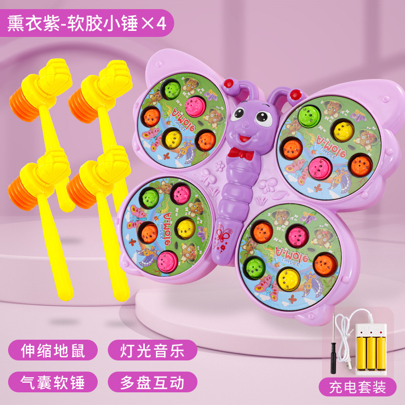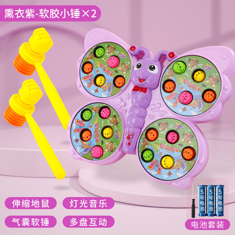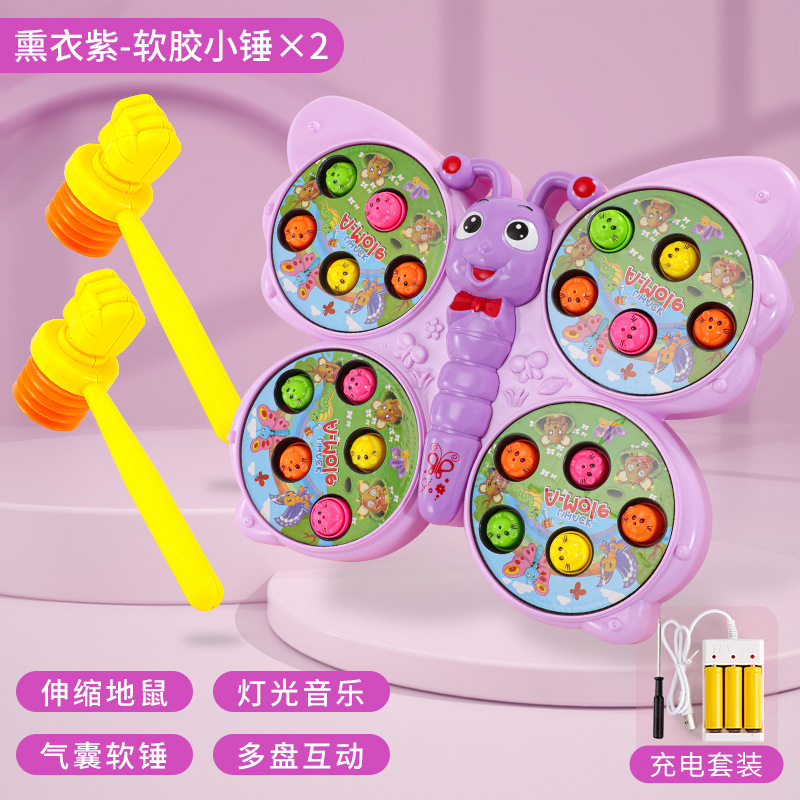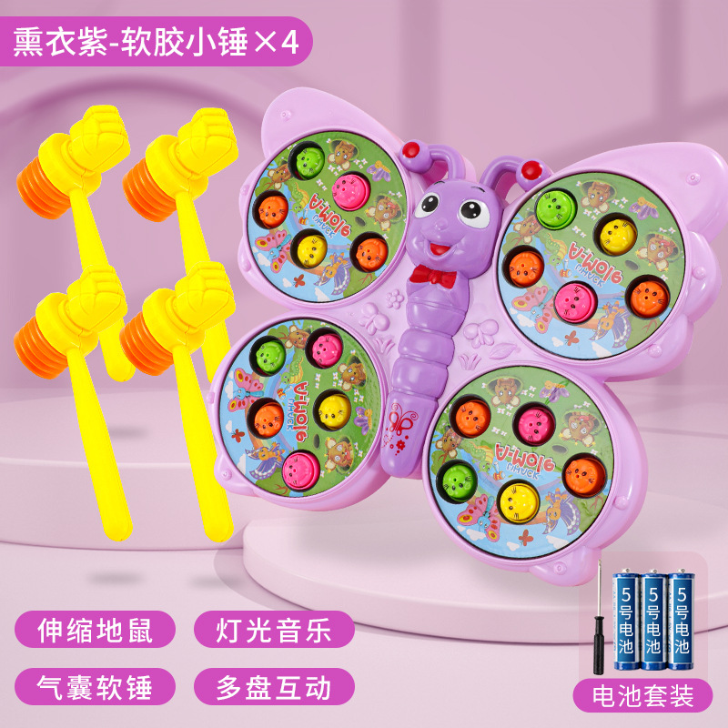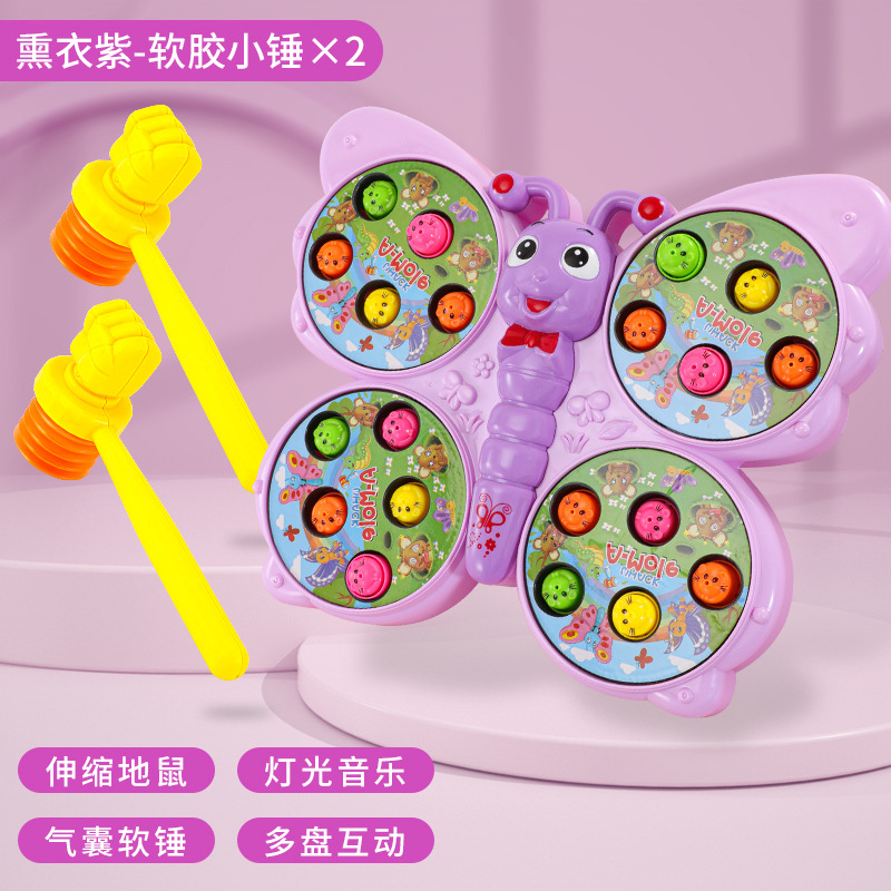 儿童趣味打地鼠玩具萌趣蝴蝶造型灯光音乐敲打小游戏亲子伙伴互动