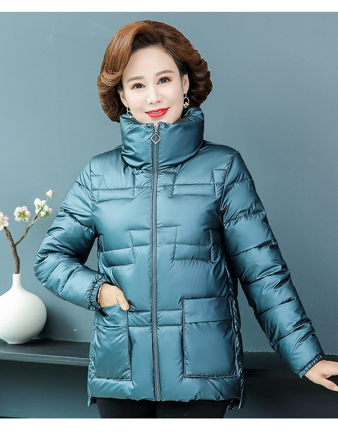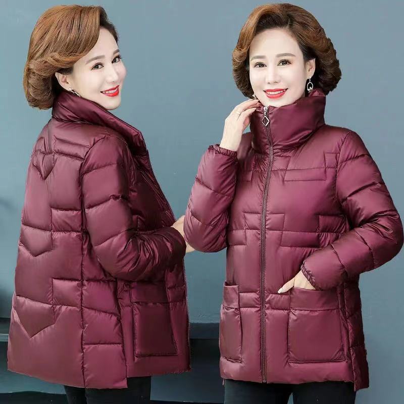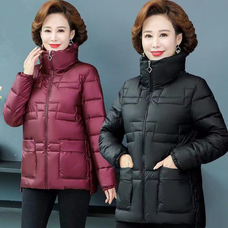 气质亮面纯色白搭免洗羽绒棉棉衣中年妈妈立领加厚保暖外套女短款