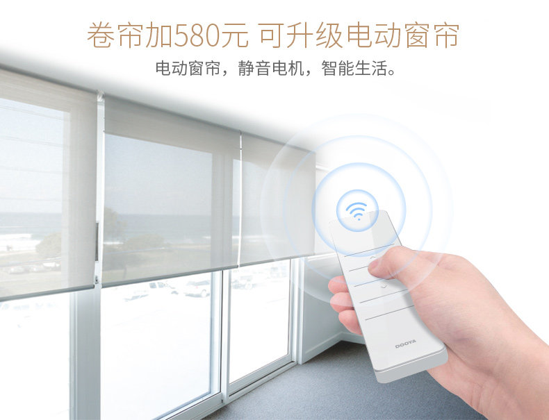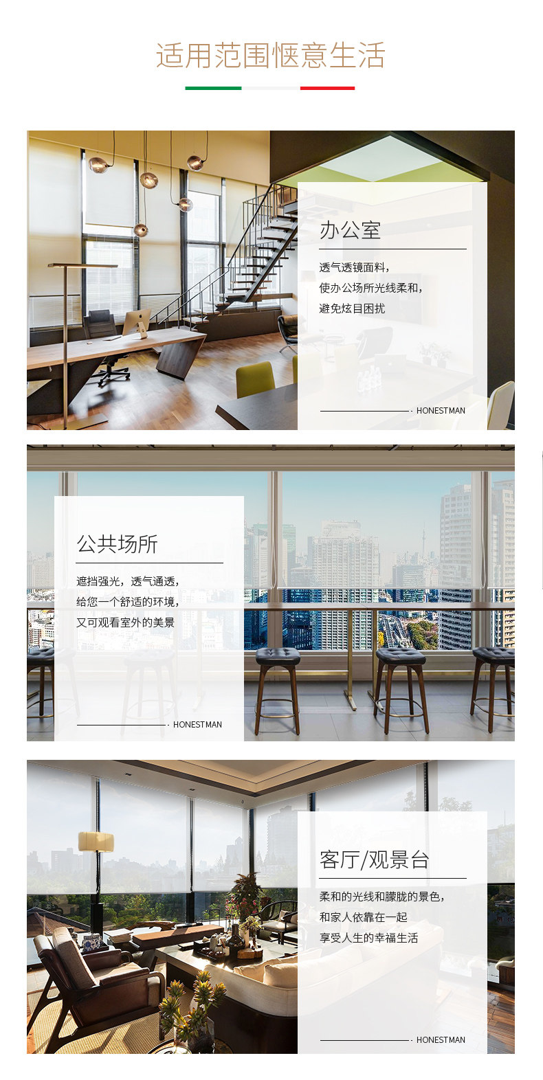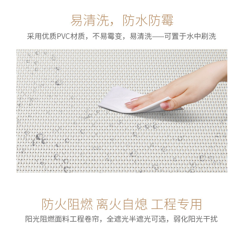 阻燃防水办公室升降窗帘工程拉珠遮光遮阳透景阳光面料卷帘