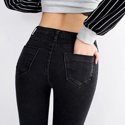 女士高腰牛仔裤女春夏季薄款九分裤韩版小脚铅笔裤长裤