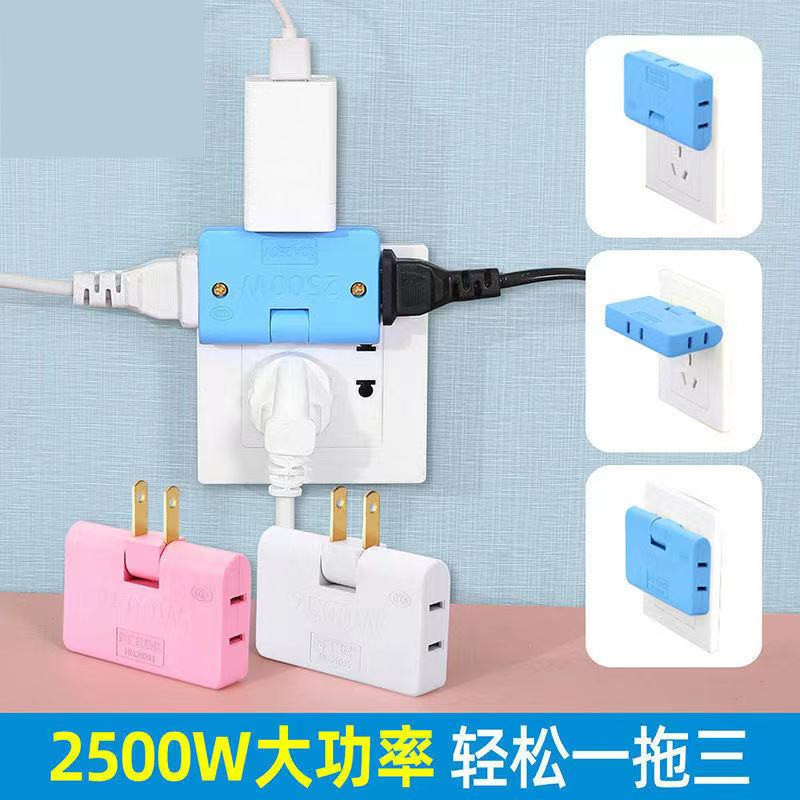 180度旋转插座超薄一转三插头家用两孔插口两脚无线转换器