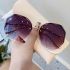 夏季新款多边形钻石切边墨镜女 无框海洋色金属太阳镜欧美太阳镜