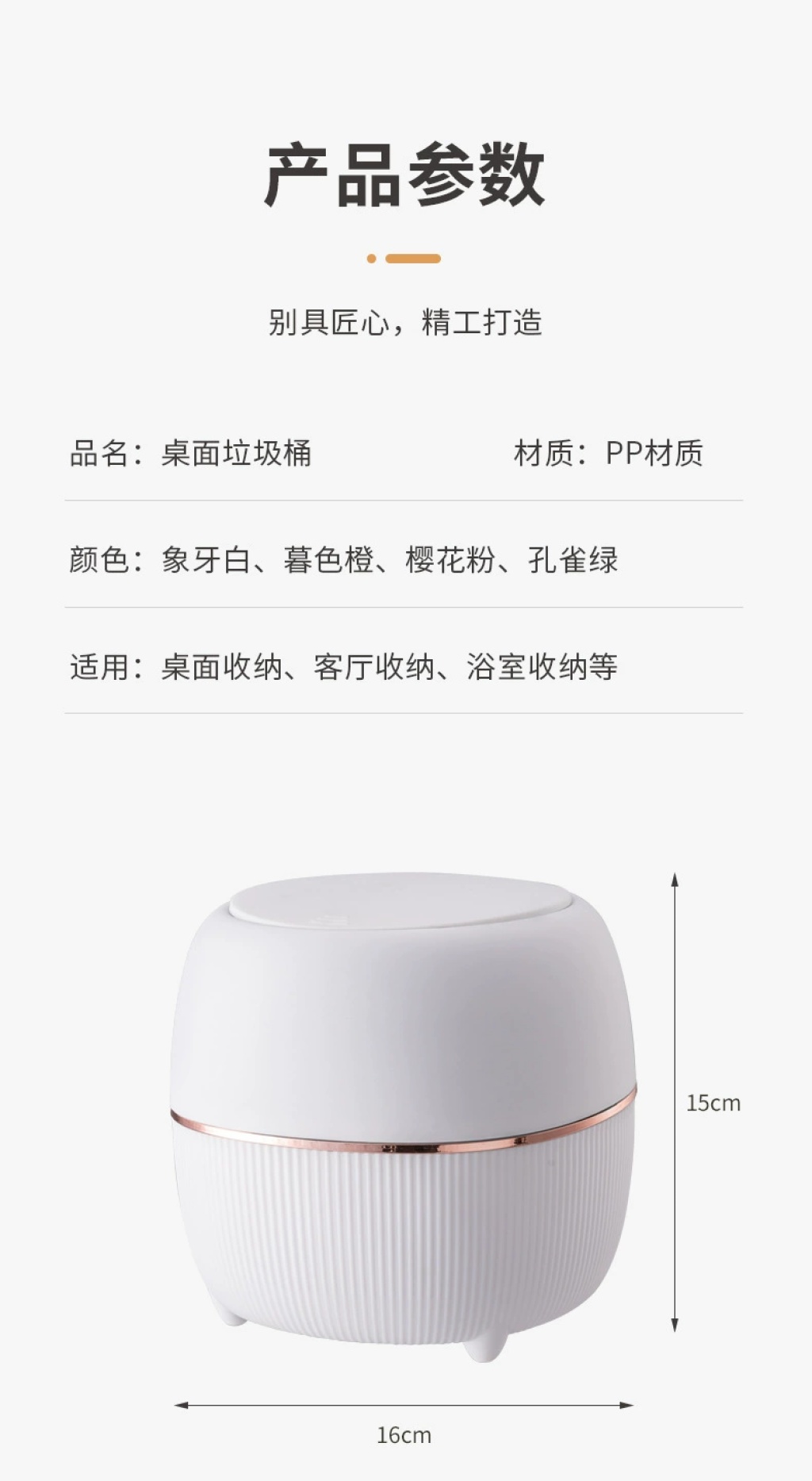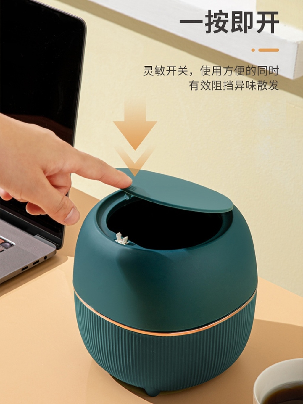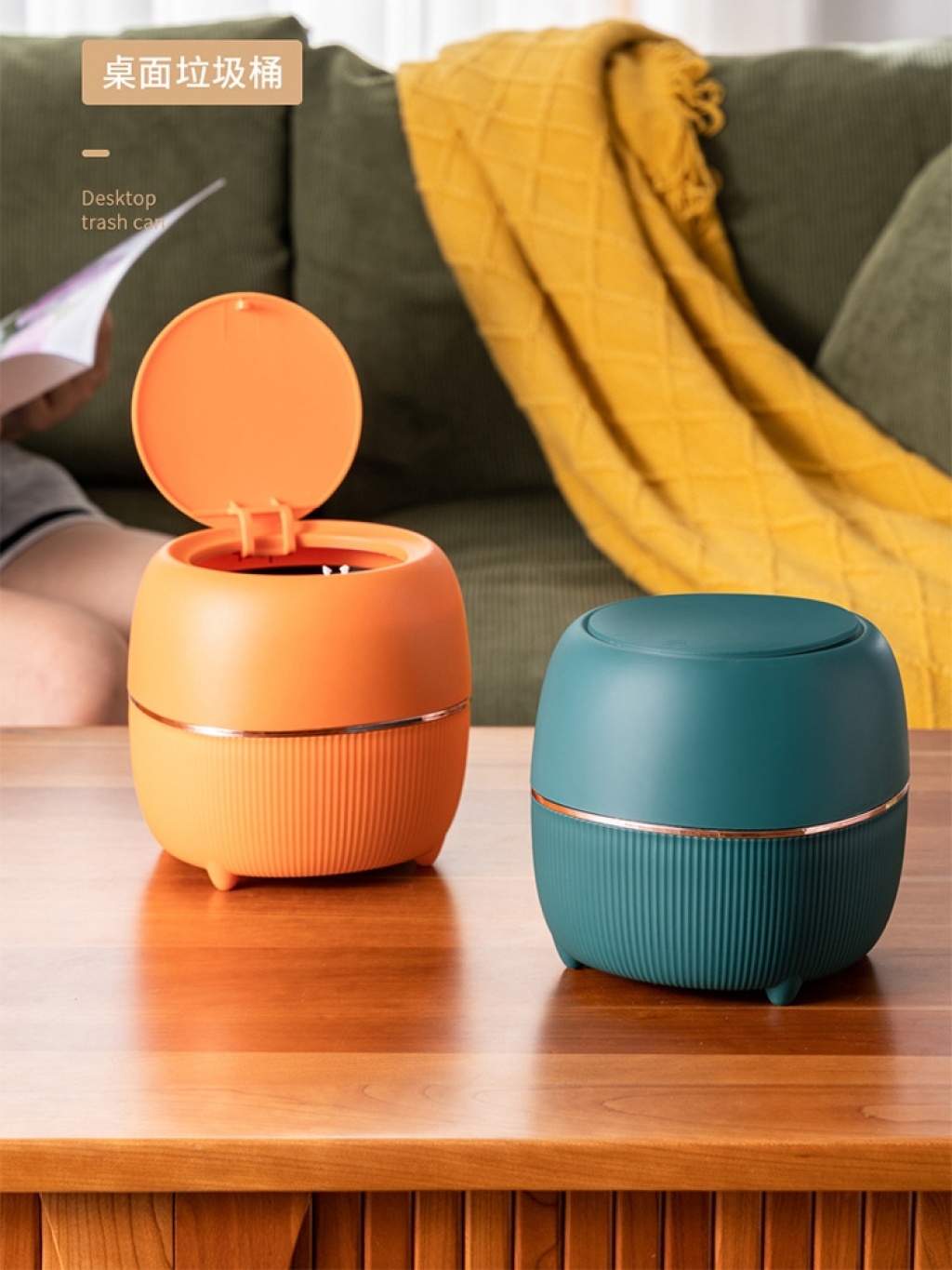 Z45-1909爱尚桌面按压有盖家用桌面迷你轻纸篓客厅卧室带盖收纳桶