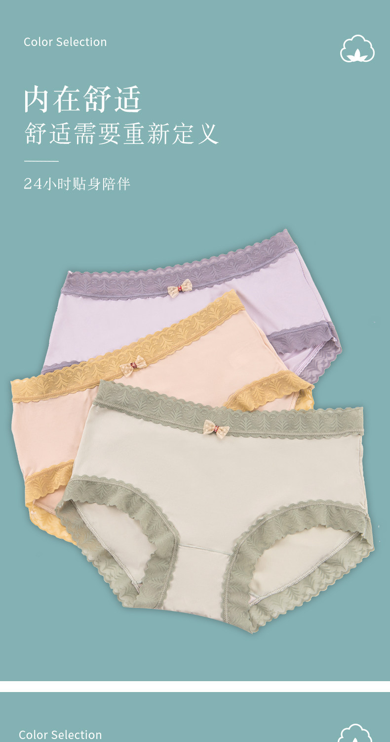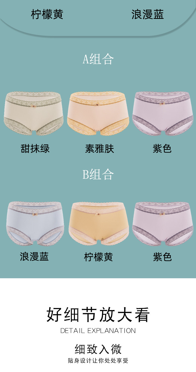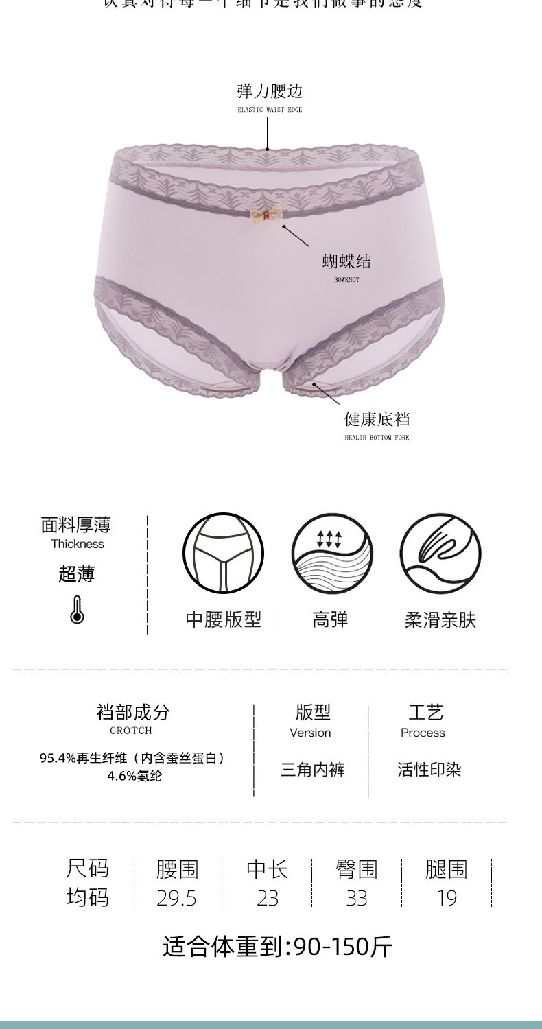 蚕丝女士内裤中腰包臀纯棉蕾丝全棉无痕透气收腹提臀少女三角裤头