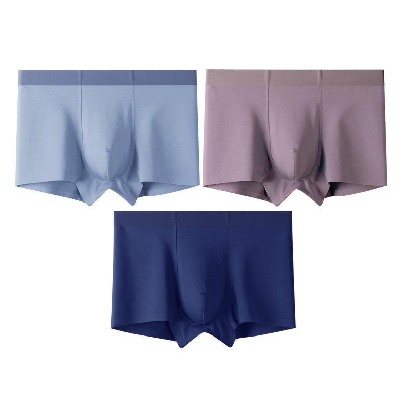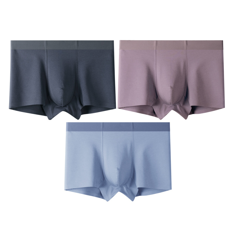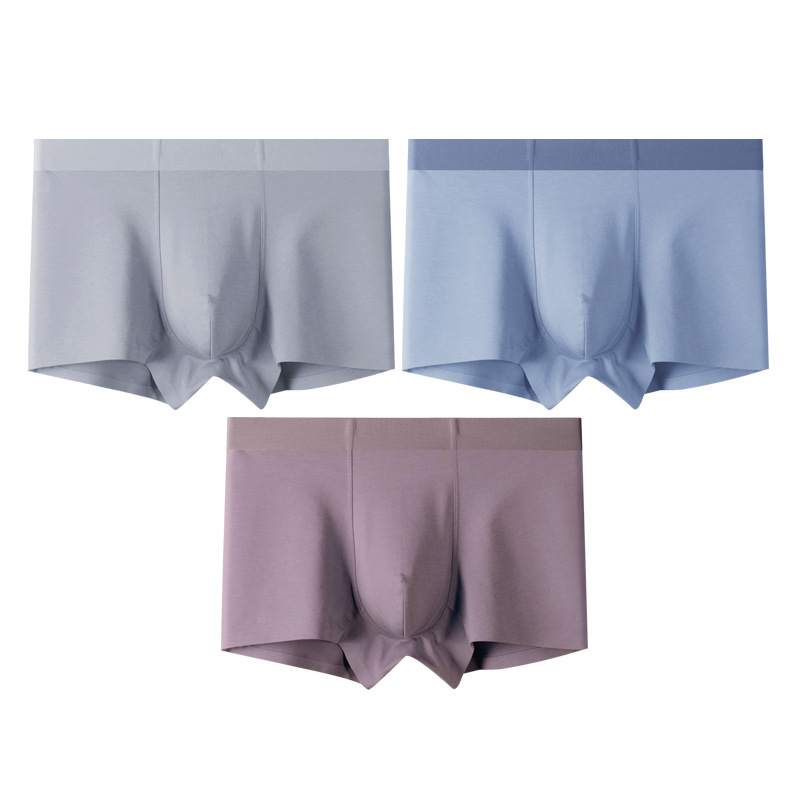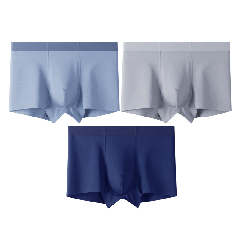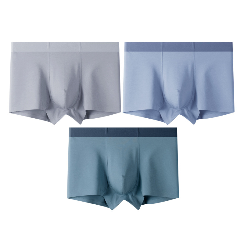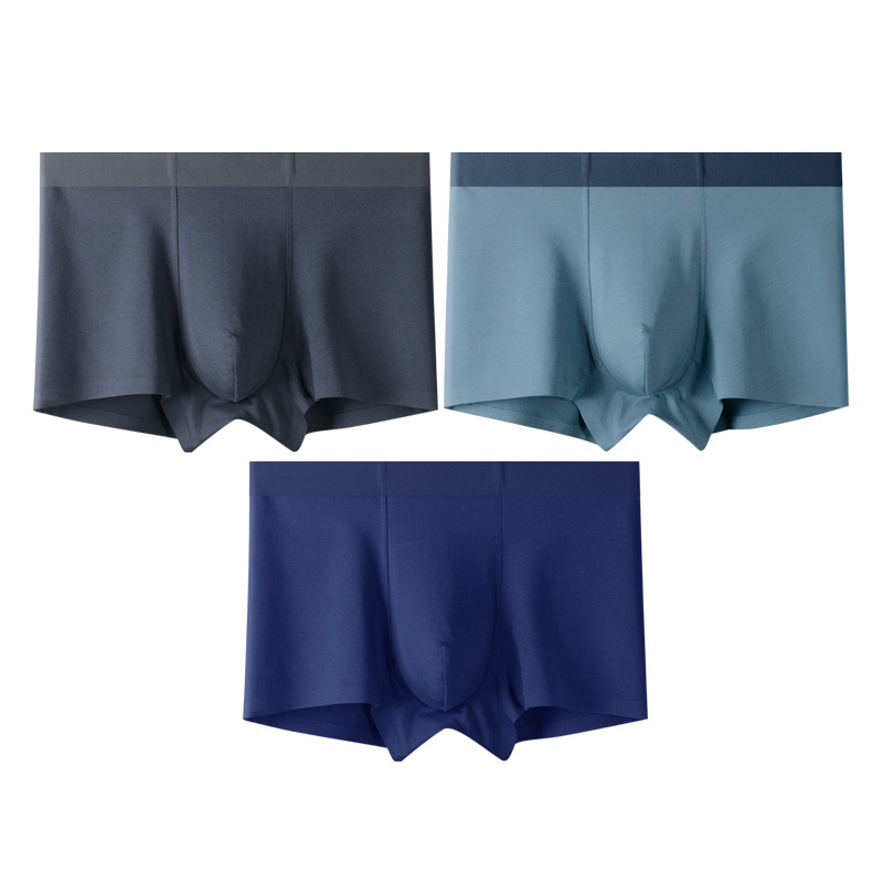 3条装纯色棉质男士内裤桑蚕丝内裆无痕男平角裤工厂一件代发